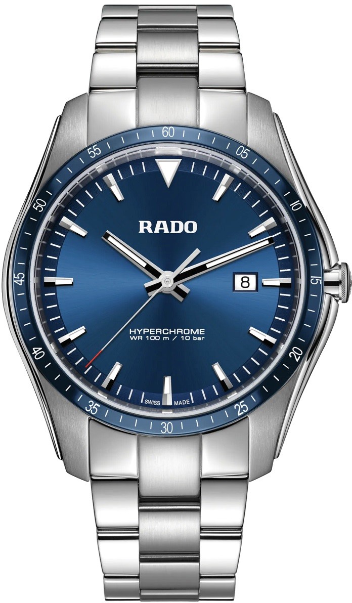 Rado HyperChrome R32502203 sú pánske klasické hodinky s oceľovým náramkom. Puzdro z leštenej nerezovej ocele má priemer 44,9 milimetra a lunetu z materiálu High-Tech Ceramic, ktorý je vysoko odolný voči poškriabaniu. Modrý číselník s efektom slnečného brusu a dátumovkou na tretej hodine je chránený zafírovým sklom s obojstrannou antireflexnou vrstvou na minimalizovanie odleskov svetla. Ručičky a indexy sú potiahnuté luminiscenčnou vrstvou Super-LumiNova® pre lepšiu čitateľnosť aj za zhoršených svetelných podmienok. Chod hodiniek zaisťuje švajčiarsky quartzový strojček. S vodotesnosťou 100 metrov sú hodinky vhodnou voľbou na kúpanie a šnorchlovanie.