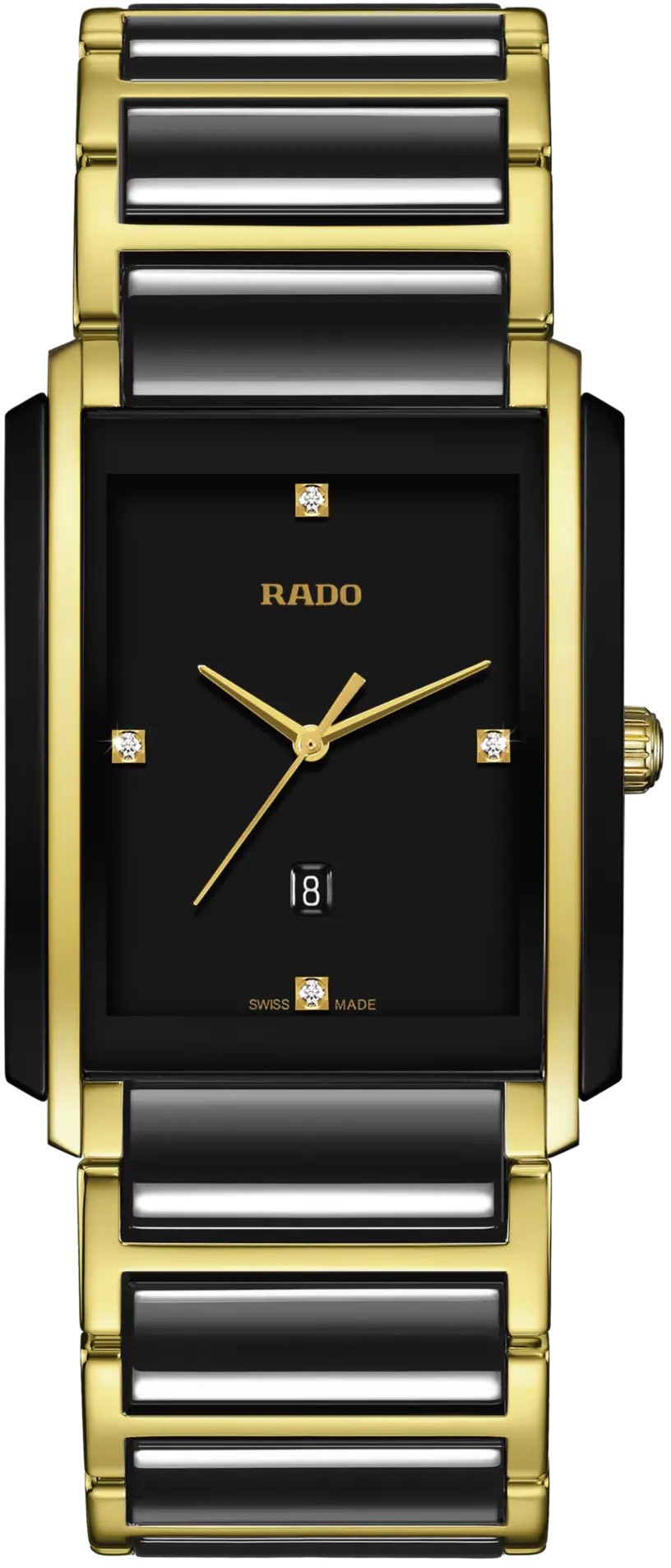Rado Integral R20204712 sú elegantné unisex hodinky s hranatým puzdrom širokým 31 milimetrov. Materiál puzdra aj náramku tvorí kombinácia vysoko odolného materiálu High-Tech Ceramic s leštenou nerezovou oceľou opatrenou PVD úpravou zlatej farby. Čierny číselník s ukazovateľom dátumu a 4 diamantmi je chránený zafírovým sklíčkom. Pohon hodiniek zaisťuje švajčiarsky quartzový strojček. S vodotesnosťou 5 ATM sú hodinky odolné proti dažďu a pri sprchovaní.