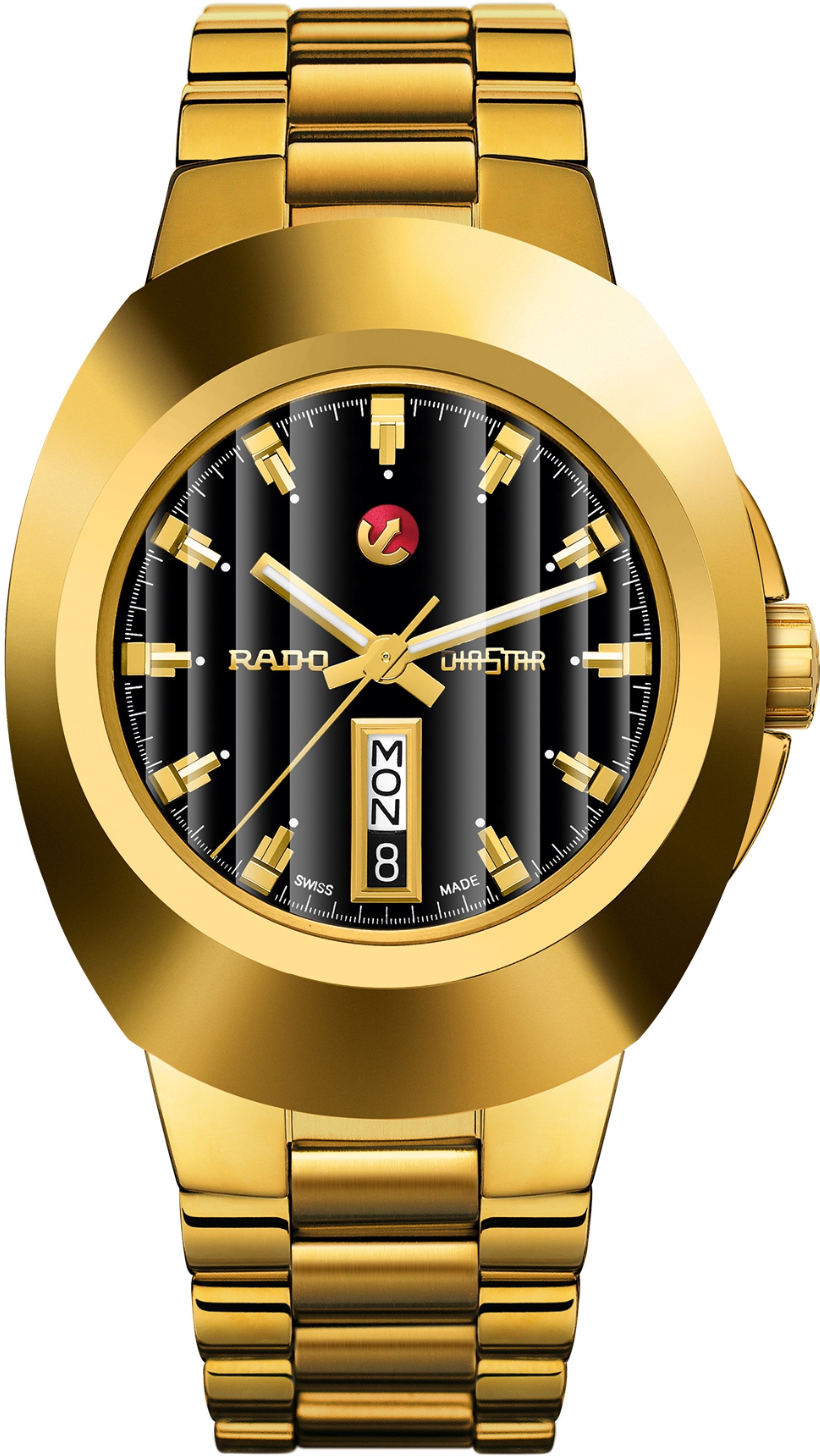 Rado New Original R12999153 sú pánske automatické hodinky v klasickom štýle s oceľovým náramkom s PVD úpravou zlatej farby a preklápacou sponou. Puzdro s priemerom 38,5 milimetra je vyrobené z ocele s PVD úpravou. Čierny číselník s ukazovateľom dátumu a dňa v týždni je chránený zafírovým sklom. Ručičky a body pri indexoch sú potiahnuté luminiscenčnou vrstvou Super-LumiNova®, ktorá garantuje perfektnú čitateľnosť za zhoršených svetelných podmienok. Mechanický strojček R764 (03.764.852) s automatickým náťahom a rezervou chodu 80 hodín disponuje funkciou hackingu (zastavenie sekundovej ručičky pri vytiahnutí korunky do krajnej polohy) a je možné ho v prípade potreby naťahovať aj ručne. Vďaka použitiu antimagnetického vlásku zotrvačky Nivachron™ z titánovej zliatiny je tento kaliber vysoko odolný voči vplyvom magnetického poľa. Na dosiahnutie čo najvyššej možnej presnosti je stroj testovaný v piatich pozíciách. Vodotesnosť hodiniek je 10 ATM a je teda vhodná na plávanie a šnorchlovanie.
