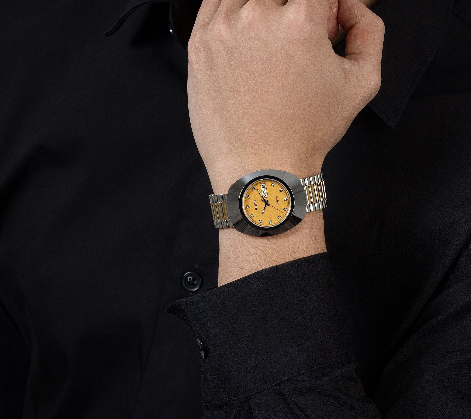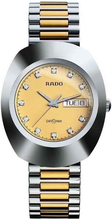 Rado Original R12391633 sú pánske klasické batériové hodinky s náramkom z nerezovej ocele s čiastočnou PVD úpravou zlatej farby a hardmetalovým puzdrom s priemerom 35,1 milimetra. Zlatý číselník s ukazovateľom dátumu a dňa v týždni, zdobený 11 diamantmi, je chránený zafírovým sklíčkom. Ručičky sú potiahnuté náterom Super-LumiNova® pre čo najlepšiu čitateľnosť za zhoršených svetelných podmienok. Pohon hodiniek zaisťuje švajčiarsky quartzový strojček. S vodotesnosťou 3 ATM sú hodinky odolné proti vlhkosti a dažďu.
