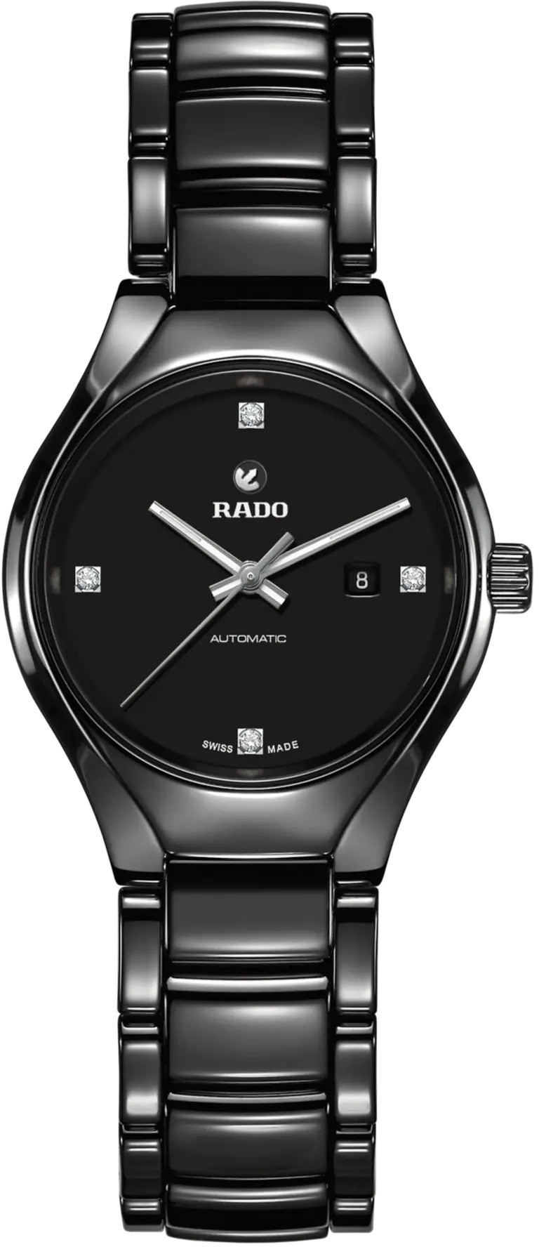 Rado True Automatic Diamonds R27242722 sú dámske elegantné hodinky vyrobené zo špeciálneho materiálu High-Tech Ceramic. Vďaka tomuto materiálu sú hodinky ľahké, hypoalergénne a odolné voči poškriabaniu. Puzdro hodiniek má priemer 30 milimetrov. Čierny číselník s ukazovateľom dátumu na tretej hodine je chránený zafírovým sklom. Ručičky v striebornej farbe sú potiahnuté vrstvou Super-LumiNova® pre lepšiu čitateľnosť za zhoršených svetelných podmienok. Pohon hodiniek zaisťuje mechanický strojček R561 (03.561.332) s automatickým náťahom a rezervou chodu 44 hodín. Tento strojček s funkciou zastavenia sekundovej ručičky pri vytiahnutí korunky do krajnej polohy, pre ktorú sa vžilo označenie hacking, je možné v prípade potreby naťahovať aj ručne. Vďaka použitiu antimagnetického vlásku zotrvačky Nivachron™ z titánovej zliatiny, je tento kaliber vysoko odolný voči vplyvom magnetického poľa. Pre dosiahnutie čo najvyššej možnej presnosti je stroj testovaný v piatich pozíciách. Hodinky disponujú vodotesnosťou 5 ATM a sú teda odolné proti dažďu a pri sprchovaní.