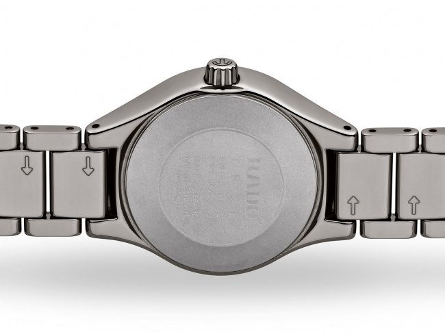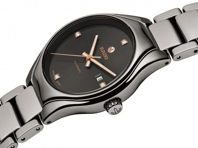 Rado True Automatic Diamonds R27243712 sú dámske elegantné hodinky vyrobené zo špeciálneho materiálu Plasma High-Tech Ceramic. Vďaka tomuto materiálu sú hodinky ľahké, hypoalergénne a odolné voči poškriabaniu. Puzdro hodiniek má priemer 30 milimetrov. Šedý číselník s efektom slnečného brusu doplnený 4 diamantmi a ukazovateľom dátumu je chránený zafírovým sklom. Ručičky vo farbe ružového zlata sú potiahnuté vrstvou Super-LumiNova® pre lepšiu čitateľnosť za zhoršených svetelných podmienok. Pohon hodiniek zaisťuje mechanický strojček R561 (03.561.331) s automatickým náťahom a rezervou chodu 44 hodín. Tento strojček s funkciou zastavenia sekundovej ručičky pri vytiahnutí korunky do krajnej polohy, pre ktorú sa vžilo označenie hacking, je možné v prípade potreby naťahovať aj ručne. Vďaka použitiu antimagnetického vlásku zotrvačky Nivachron™ z titánovej zliatiny, je tento kaliber vysoko odolný voči vplyvom magnetického poľa. Pre dosiahnutie čo najvyššej možnej presnosti je stroj testovaný v piatich pozíciách. Hodinky disponujú vodotesnosťou 5 ATM a sú teda odolné proti dažďu a pri sprchovaní.
