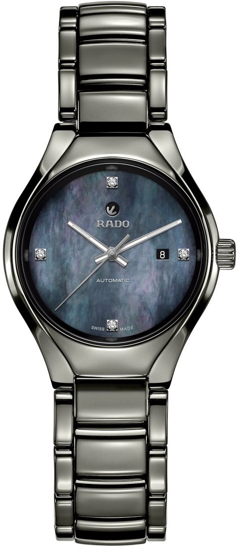 Rado True Automatic Diamonds R27243872 sú dámske elegantné hodinky vyrobené zo špeciálneho materiálu Plasma High-Tech Ceramic. Vďaka tomuto materiálu sú hodinky ľahké, hypoalergénne a odolné voči poškriabaniu. Puzdro hodiniek má priemer 30 milimetrov. Modrý perleťový číselník doplnený 4 diamantmi a ukazovateľom dátumu je chránený zafírovým sklom a jeho krása vyniká najmä pod priamym slnečným svetlom, kedy môžeme pozorovať hru farieb perlete.  Ručičky sú potiahnuté vrstvou Super-LumiNova® pre lepšiu čitateľnosť za zhoršených svetelných podmienok. Pohon hodiniek zaisťuje mechanický strojček R561 (03.561.332) s automatickým náťahom a rezervou chodu 44 hodín. Tento strojček s funkciou zastavenia sekundovej ručičky pri vytiahnutí korunky do krajnej polohy, pre ktorú sa vžilo označenie hacking, je možné v prípade potreby naťahovať aj ručne. Vďaka použitiu antimagnetického vlásku zotrvačky Nivachron™ z titánovej zliatiny, je tento kaliber vysoko odolný voči vplyvom magnetického poľa. Pre dosiahnutie čo najvyššej možnej presnosti je stroj testovaný v piatich pozíciách. Hodinky disponujú vodotesnosťou 5 ATM a sú teda odolné proti dažďu a pri sprchovaní.