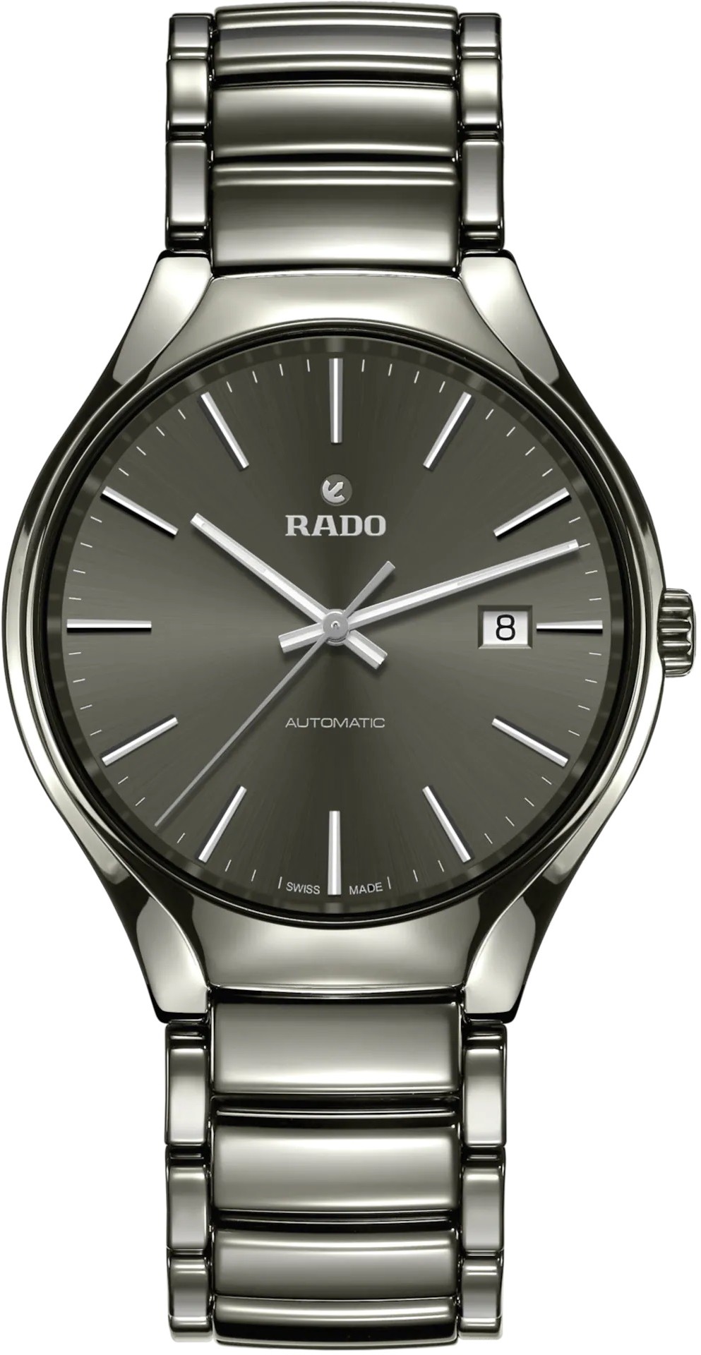 Rado True Automatic R27057102 sú pánske elegantné hodinky vyrobené zo špeciálneho materiálu Plasma High-Tech Ceramic. Vďaka tomuto materiálu sú hodinky ľahké, hypoalergénne a odolné voči poškriabaniu. Puzdro hodiniek má priemer 40 milimetrov. Šedý číselník s efektom slnečného brusu a ukazovateľom dátumu na tretej hodine je chránený zafírovým sklom s obojstrannou antireflexnou vrstvou. Ručičky a indexy sú potiahnuté vrstvou Super-LumiNova® pre lepšiu čitateľnosť za zhoršených svetelných podmienok. Pohon hodiniek zaisťuje mechanický strojček R763 (03.763.932) s automatickým náťahom a rezervou chodu 80 hodín. Tento strojček s funkciou zastavenia sekundovej ručičky pri vytiahnutí korunky do krajnej polohy, pre ktorú sa vžilo označenie hacking, je možné v prípade potreby naťahovať aj ručne. Vďaka použitiu antimagnetického vlásku zotrvačky Nivachron™ z titánovej zliatiny, je tento kaliber vysoko odolný voči vplyvom magnetického poľa. Pre dosiahnutie čo najvyššej možnej presnosti je stroj testovaný v piatich pozíciách. Hodinky disponujú vodotesnosťou 5 ATM a sú teda odolné proti dažďu a pri sprchovaní.
