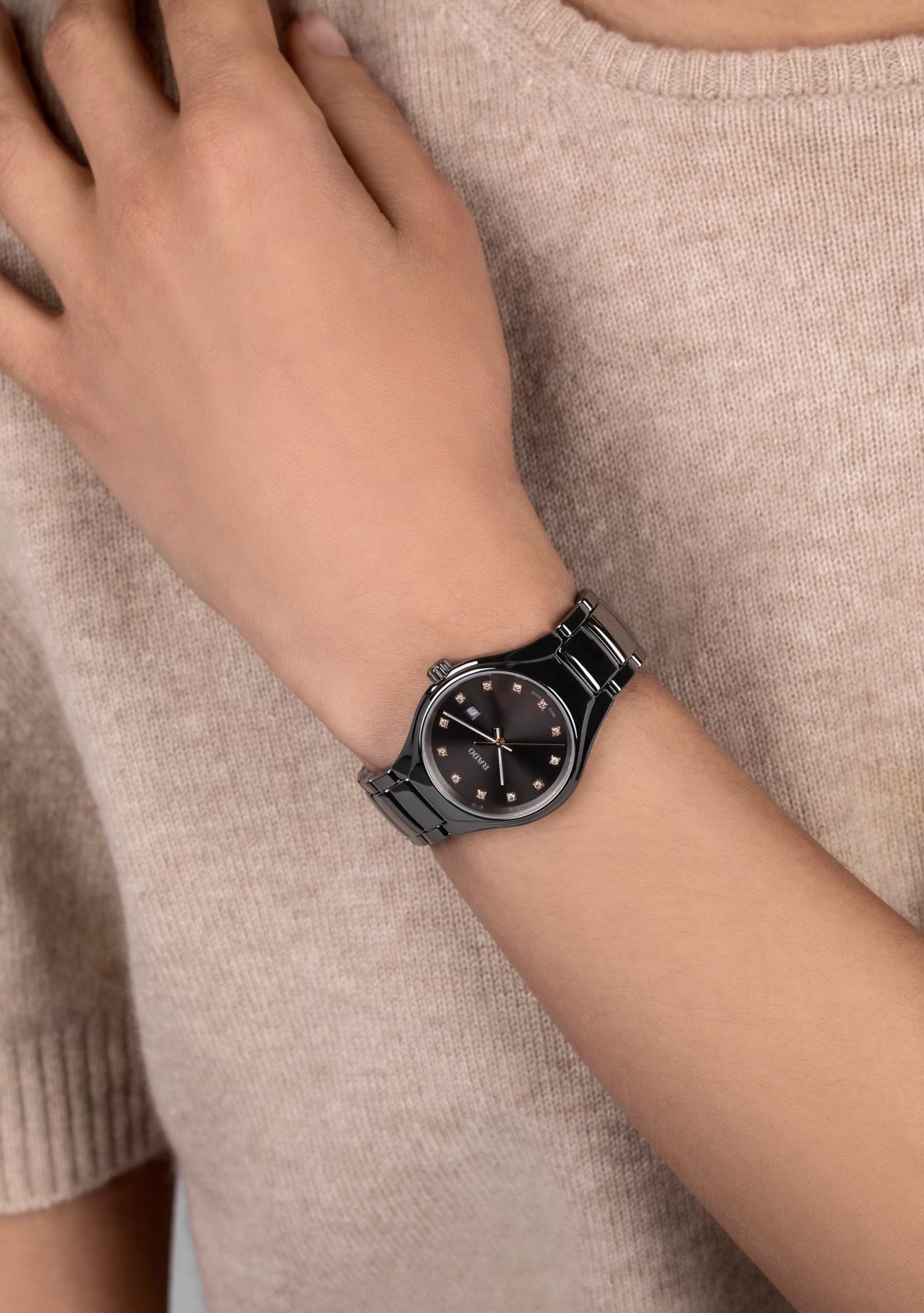 Rado True R27060732 sú dámske elegantné hodinky vyrobené zo špeciálneho materiálu Plasma High-Tech Ceramic. Vďaka tomuto materiálu sú hodinky ľahké, hypoalergénne a odolné voči poškriabaniu. Puzdro hodiniek má priemer 30 milimetrov. Šedý číselník s efektom slnečného brusu doplnený 12 diamantmi a ukazovateľom dátumu je chránený zafírovým sklom s obojstrannou antireflexnou vrstvou. Ručičky vo farbe ružového zlata sú potiahnuté vrstvou Super-LumiNova® pre lepšiu čitateľnosť za zhoršených svetelných podmienok. Pohon hodiniek zaisťuje švajčiarsky quartzový strojček. Hodinky disponujú vodotesnosťou 5 ATM a sú teda odolné proti dažďu a pri sprchovaní.