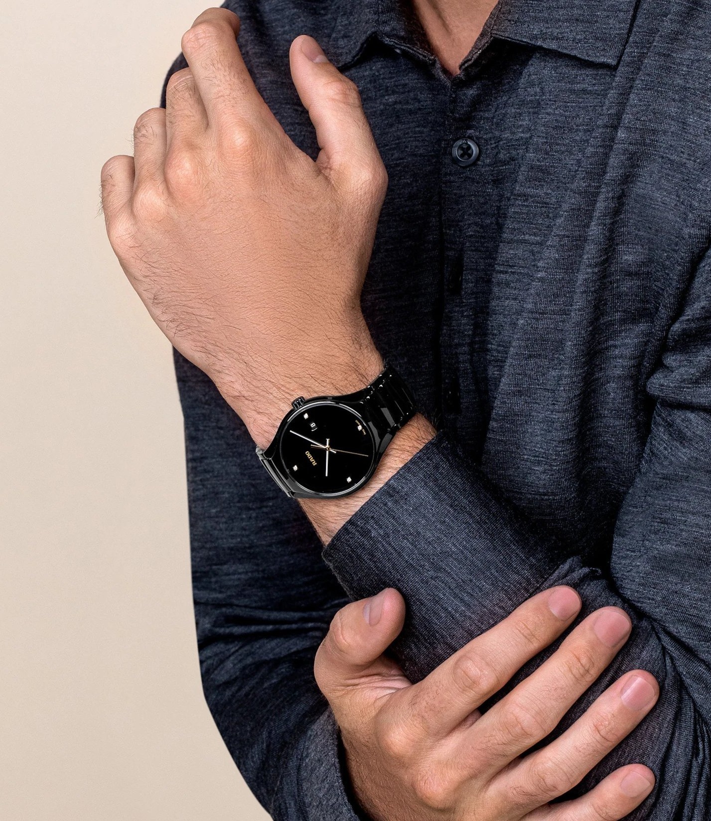 Rado True R27238712 sú pánske elegantné hodinky vyrobené zo špeciálneho materiálu High-Tech Ceramic. Vďaka tomuto materiálu sú hodinky ľahké, hypoalergénne a odolné voči poškriabaniu. Puzdro hodiniek má priemer 40 milimetrov. Čierny číselník so 4 diamantmi a ukazovateľom dátumu je chránený zafírovým sklom s obojstrannou antireflexnou vrstvou. Ručičky sú pre lepšiu čitateľnosť za zhoršených svetelných podmienok potiahnuté luminiscenčnou vrstvou Super-LumiNova®. Pohon hodiniek zaisťuje švajčiarsky quartzový strojček. Hodinky disponujú vodotesnosťou 5 ATM a sú teda odolné proti dažďu a pri sprchovaní.