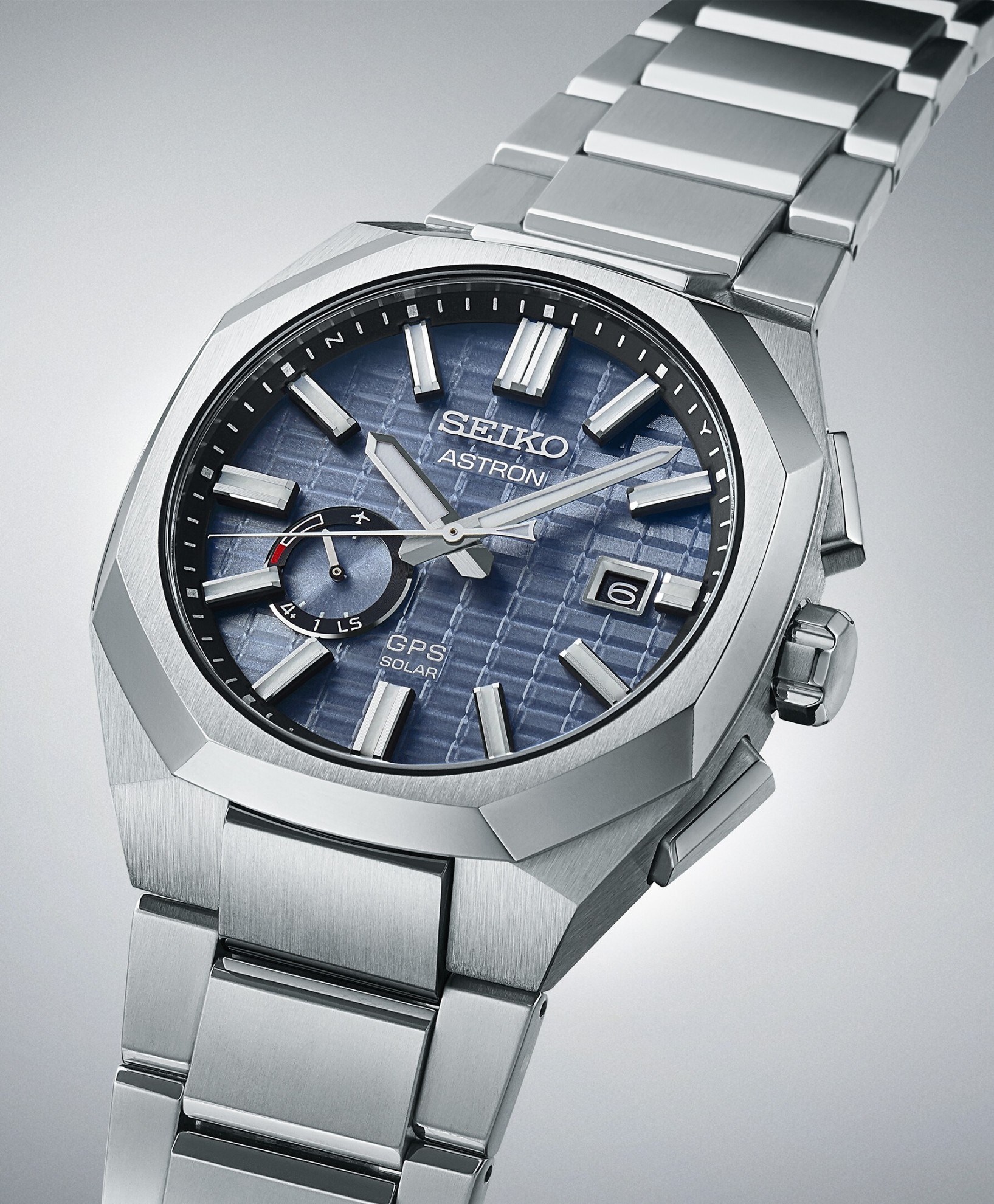 Modrý číselník s indikáciou dátumu, večným kalendárom a so subciferníkom na ôsmej hodine je chránený odolným zafírovým sklom s antireflexnou vrstvou. Subciferník plní úlohu indikácie procesu príjmu signálu GPS, stavu nabitia batérie, príjmu prestupných sekundových dát a letového režimu. Dizajn číselníka bol inšpirovaný kremíkovými kryštálmi použitými k vytvoreniu ladiacich vidlicových oscilátorov pôvodných hodiniek Quartz Astron. Aplikované hodinové indexy sú rovnako ako ručičky pokryté luminiscenčným náterom LumiBrite, ktorý garantuje perfektnú čitateľnosť za zhoršených svetelných podmienok. Pohon hodiniek zaisťuje solárny batériový strojček 3X62 s prevenciou prebíjania a funkciou úspory energie. Hodinky prijímajú signál GPS pre automatické nastavenie času a nastavenie časového pásma. Strojček má presnosť cca 15 sekúnd za mesiac bez príjmu signálu GPS a pri teplotách 5 - 35 °C a disponuje rezervou chodu zhruba 6 mesiacov pri plnom nabití. Vodotesnosť hodiniek je 10 ATM a sú vhodné na kúpanie alebo šnorchlovanie.