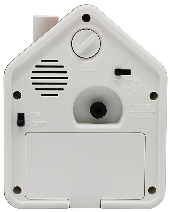 Funkcia:  Tichý plynulý chod sekundovej ručičky, Voliteľný alarm (2 vtáčie piesne/pípanie), Funkcia opakovaného budenia, Ovládanie hlasitosti