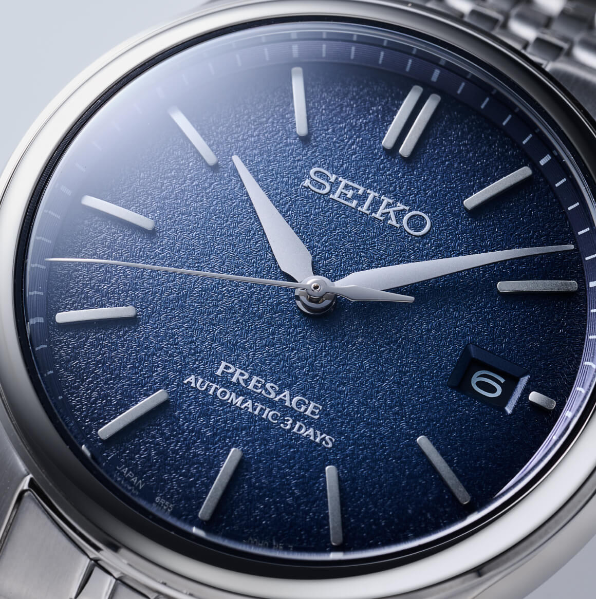 Pánske automatické hodinky Seiko Presage Classic „Ai-Iro“ SPB525J1 na sedemradovom oceľovom náramku s motýlikovou sponou. Puzdro z nerezovej ocele má priemer 40,2 milimetra a priehľadné zadné viečko. Textúrovaný gradientný modrý číselník s indikáciou dátumu na tretej hodine je chránený odolným zafírovým sklom s antireflexnou vrstvou. Vrcholy indexov sa zakrivujú tak, aby zodpovedali zaoblenému tvaru číselníka a minútová aj sekundová ručička sa jemne sklápa smerom k ukazovateľom. Modrá farba číselníka v odtieni „Ai-iro“ bola samurajskými bojovníkmi považovaná za šťastnú farbu, bola obľúbená najmä v japonskom období Edo medzi rokmi 1603 a 1868. Textúra číselníka je inšpirovaná mäkkým japonským hodvábom. Pohon hodiniek zaisťuje mechanický strojček 6R55 s automatickým náťahom a rezervou chodu približne 72 hodín. Tento manufaktúrny strojček s funkciou hackingu je možné v prípade potreby naťahovať aj ručne pomocou signovanej korunky. Vodotesnosť hodiniek je 10 ATM a sú teda vhodné na kúpanie alebo šnorchlovanie.