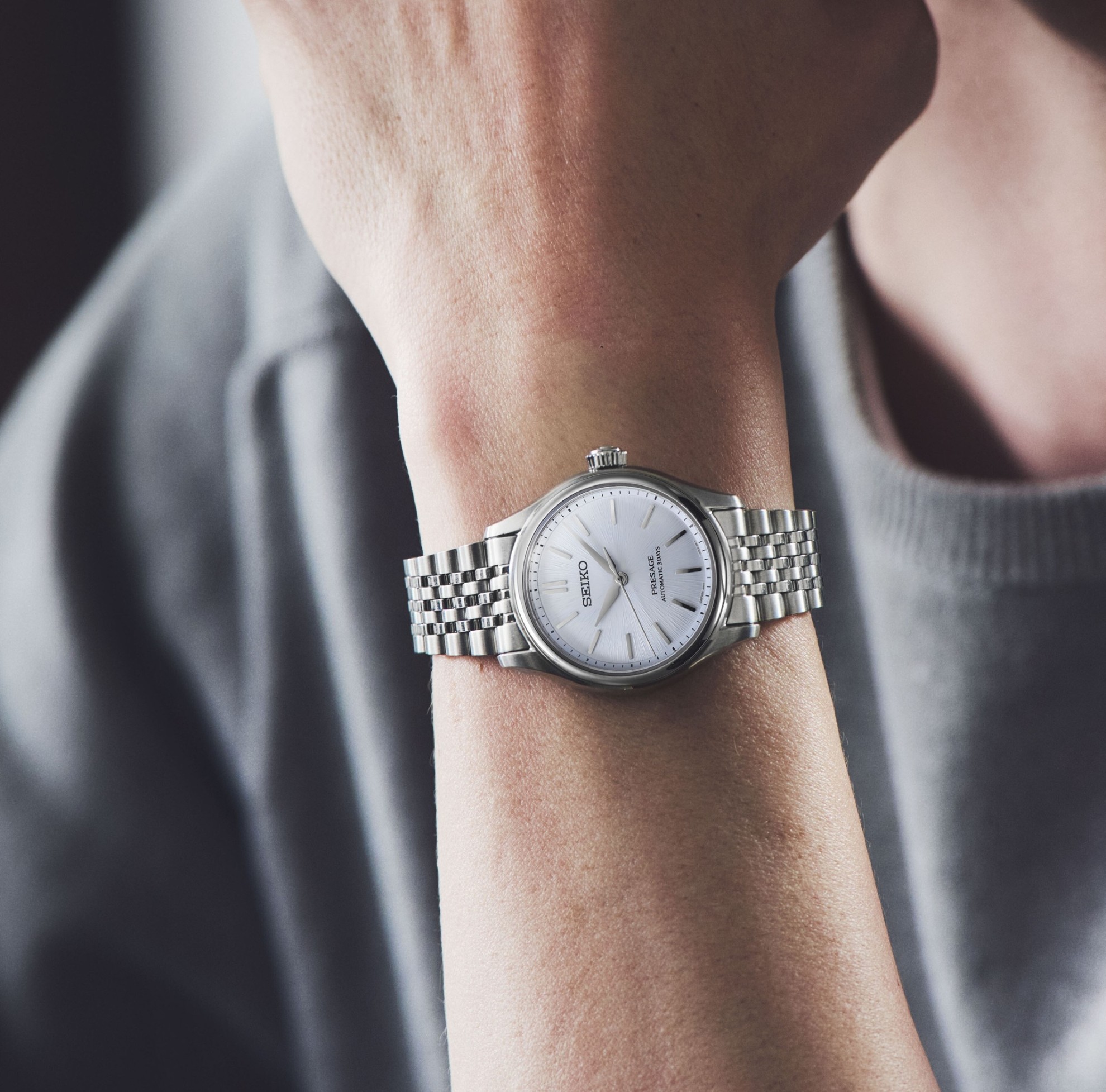 Dámske automatické hodinky Seiko Presage Classic SPB521J1 na sedemradovom oceľovom náramku s motýlikovou sponou. Puzdro z nerezovej ocele má priemer 36 milimetrov a priehľadné zadné viečko. Strieborný textúrovaný číselník s efektom slnečného brusu je chránený odolným zafírovým sklom s antireflexnou vrstvou. Pohon hodiniek zaisťuje mechanický stroj 6R51 s automatickým náťahom a rezervou chodu približne 72 hodín. Tento manufaktúrny strojček s funkciou hackingu je možné v prípade potreby naťahovať aj ručne pomocou signovanej korunky. Vodotesnosť hodiniek je 10 ATM a je teda vhodná na kúpanie alebo šnorchlovanie.