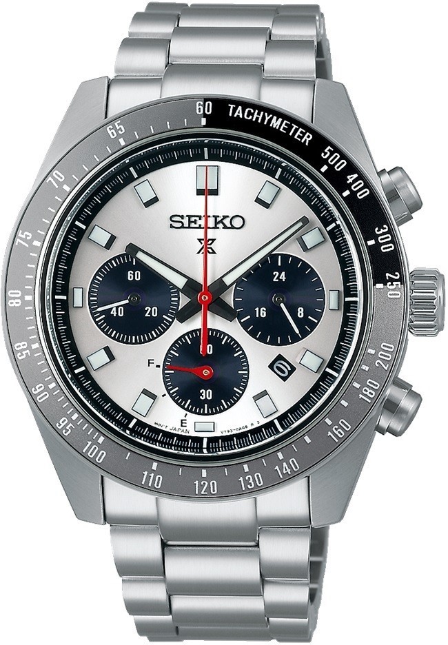 Pánske solárne hodinky Seiko Prospex Speedtimer Solar Chronograph SSC911P1 na kovovom náramku vyvedeného v kombinácii jemného kartáčovania a hladkej povrchovej úpravy s preklápacou sponou. Puzdro z nerezovej ocele má priemer 41,4 milimetra a lunetu s funkciou tachymetra. Strieborný číselník s modrými subciferníkmi, tzv. panda dial, s funkciou chronografu a indikáciou dátumu je chránený odolným zafírovým sklom s antireflexnou vrstvou. Aplikované hodinové indexy sú rovnako ako ručičky pokryté luminiscenčným náterom LumiBrite, ktorý garantuje perfektnú čitateľnosť za zhoršených svetelných podmienok. Červená farba minútovej ručičky chronografu a stredovej sekundovej ručičky podtrhuje celkový športový dizajn hodiniek. Pohon hodiniek zaisťuje solárny batériový strojček V192 s výdržou až 6 mesiacov pri plnom nabití. Vodotesnosť hodiniek je 10 ATM a sú vhodnou voľbou na kúpanie alebo šnorchlovanie.