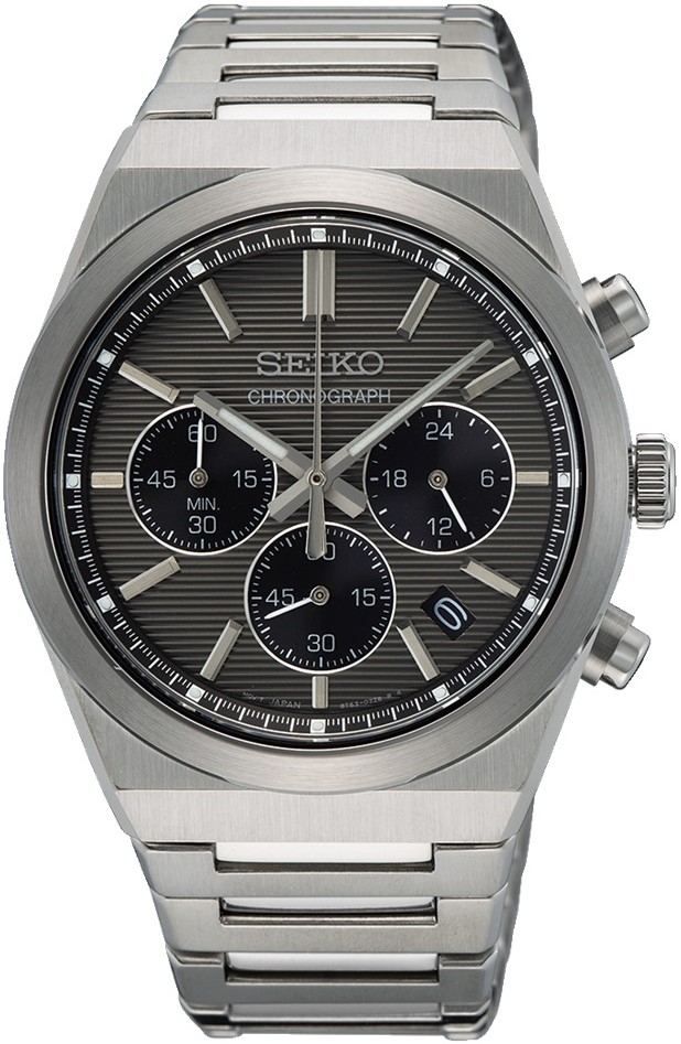 Pánske batériové hodinky Seiko Quartz Chronograph SSB455P1 na oceľovom náramku v kombinácii brusu a lesku. Puzdro z nerezovej ocele má priemer 40 milimetrov. Štruktúrovaný antracitový číselník s dátumovkou a čiernymi subciferníkmi s funkciou stopiek a ukazovateľom času v 24hodinovom formáte je chránený odolným zafírovým sklom. Ručičky sú pokryté luminiscenčným náterom LumiBrite, ktorý garantuje perfektnú čitateľnosť za zhoršených svetelných podmienok. Pohon hodiniek zaisťuje spoľahlivý quartzový strojček 8T63. Vodotesnosť hodiniek je 10 ATM a sú vhodné na kúpanie alebo šnorchlovanie.
