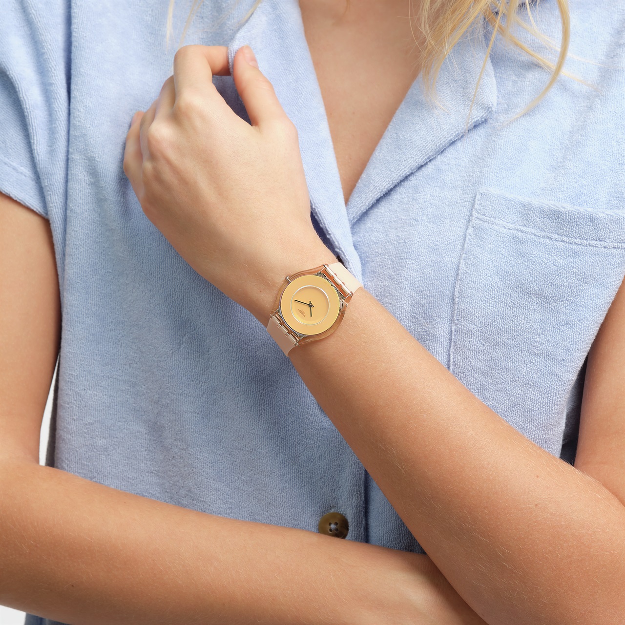 Minimalistický, ale sofistikovaný dizajn, ktorý patrí medzi tie najľahšie v rámci portfólia značky Swatch. Hodinky Skin splynú s vašou kožou vďaka svojmu ultra-tenkému puzdru s hrúbkou do 6 milimetrov a váhou iba niekoľko gramov. Najtenší rad hodiniek Swatch sa v minulosti dostal na zápästie svetovo známych modeliek, ktoré brázdili módne móla tých najprestížnejších prehliadok.