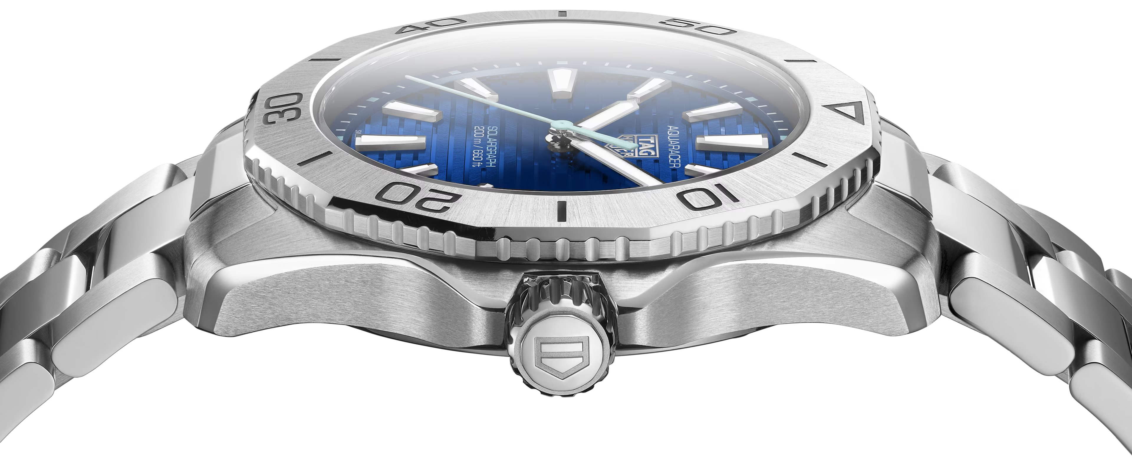 V ponuke značky TAG Heuer nemôžu chýbať potápačské modely. Tie nesú označenie Aquaracer a všetky majú charakteristický dizajn s dvanásťstrannou otočnou lunetou a výraznou korunkou s elegantnou ochranou. V rade Aquaracer nájdeme bohatú paletu modelov, vyberať je možné z mnohých prevedení číselníkov, použitých materiálov a spôsobov spracovania aj radu veľkostí. Modely Aquaracer Professional 200 majú vodotesnosť do 200 metrov a k dispozícii sú s puzdrami s priemerom 30, 34 a 40 milimetrov, sú teda vhodné aj pre užívateľov s menším zápästím. Na výber sú hodinky s quartzovým strojčekom so solárnym pohonom alebo mechanické s automatickým náťahom. Modely Aquaracer Professional 300 sú k dispozícii s oceľovými alebo titánovými puzdrami s priemerom 36, 42 alebo 43 milimetrov. Ako názov napovedá hodinky disponujú vodotesnosťou 300 metrov. Na špičke radu potom stojí titánový model Aquaracer Professional 1000 Superdiver s vodotesnosťou 1000 metrov.