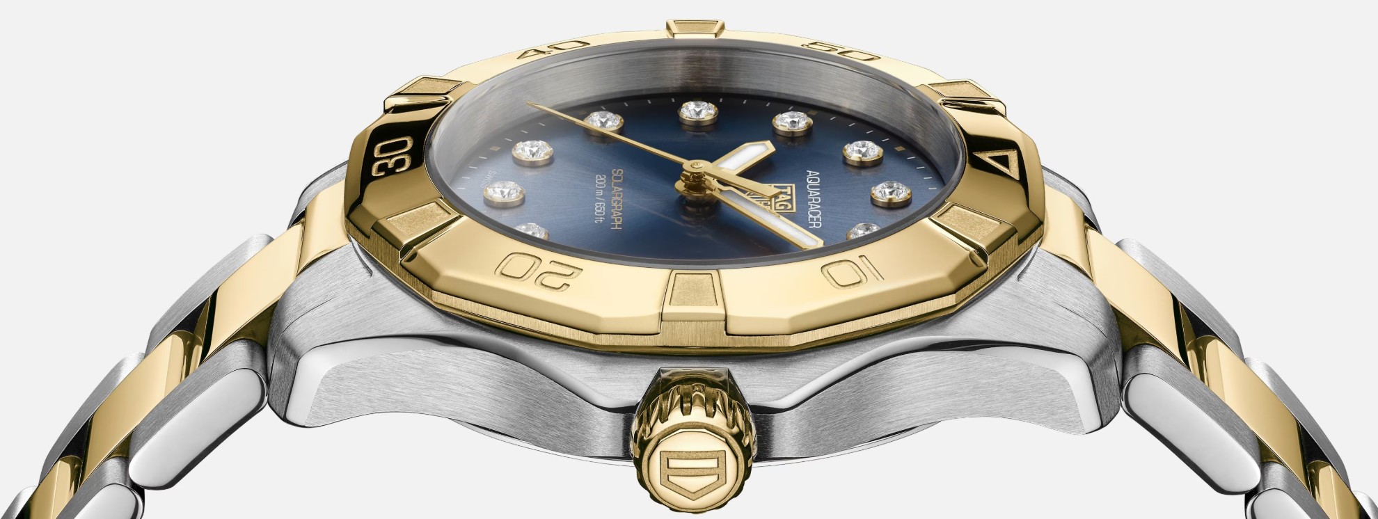 V ponuke značky TAG Heuer nemôžu chýbať potápačské modely. Tie nesú označenie Aquaracer a všetky majú charakteristický dizajn s dvanásťstrannou otočnou lunetou a výraznou korunkou s elegantnou ochranou. V rade Aquaracer nájdeme bohatú paletu modelov, vyberať je možné z mnohých prevedení číselníkov, použitých materiálov a spôsobov spracovania aj radu veľkostí. Modely Aquaracer Professional 200 majú vodotesnosť do 200 metrov a k dispozícii sú s puzdrami s priemerom 30, 34 a 40 milimetrov, sú teda vhodné aj pre užívateľov s menším zápästím. Na výber sú hodinky s quartzovým strojčekom so solárnym pohonom alebo mechanické s automatickým náťahom. Modely Aquaracer Professional 300 sú k dispozícii s oceľovými alebo titánovými puzdrami s priemerom 36, 42 alebo 43 milimetrov. Ako názov napovedá hodinky disponujú vodotesnosťou 300 metrov. Na špičke radu potom stojí titánový model Aquaracer Professional 1000 Superdiver s vodotesnosťou 1000 metrov.