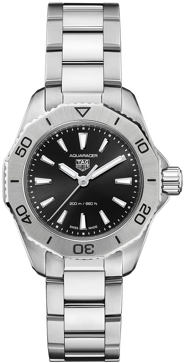 V ponuke značky TAG Heuer nemôžu chýbať potápačské modely. Tie nesú označenie Aquaracer a všetky majú charakteristický dizajn s dvanásťstrannou otočnou lunetou a výraznou korunkou s elegantnou ochranou. V rade Aquaracer nájdeme bohatú paletu modelov, vyberať je možné z mnohých prevedení číselníkov, použitých materiálov a spôsobov spracovania aj radu veľkostí. Modely Aquaracer Professional 200 majú vodotesnosť do 200 metrov a k dispozícii sú s puzdrami s priemerom 30, 34 a 40 milimetrov, sú teda vhodné aj pre užívateľov s menším zápästím. Na výber sú hodinky s quartzovým strojčekom so solárnym pohonom alebo mechanické s automatickým náťahom. Modely Aquaracer Professional 300 sú k dispozícii s oceľovými alebo titánovými puzdrami s priemerom 36, 42 alebo 43 milimetrov. Ako názov napovedá hodinky disponujú vodotesnosťou 300 metrov. Na špičke radu potom stojí titánový model Aquaracer Professional 1000 Superdiver s vodotesnosťou 1000 metrov.