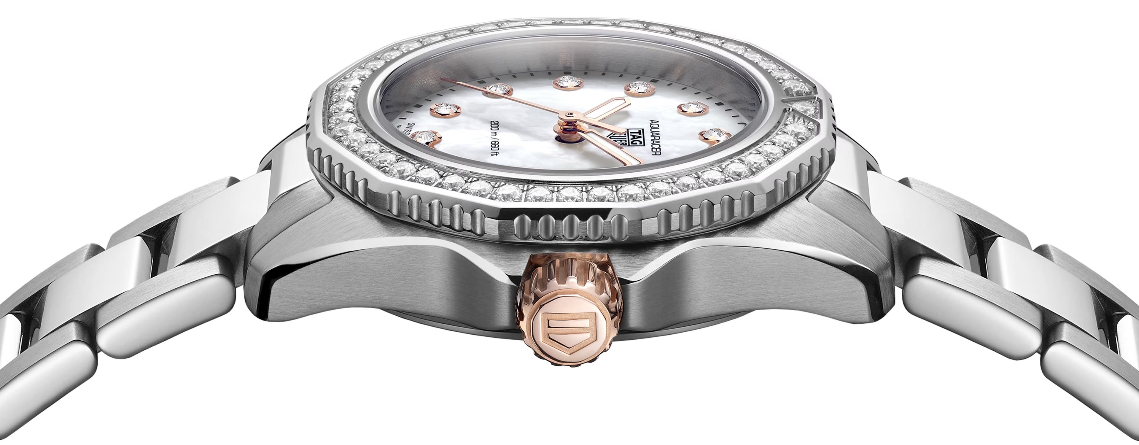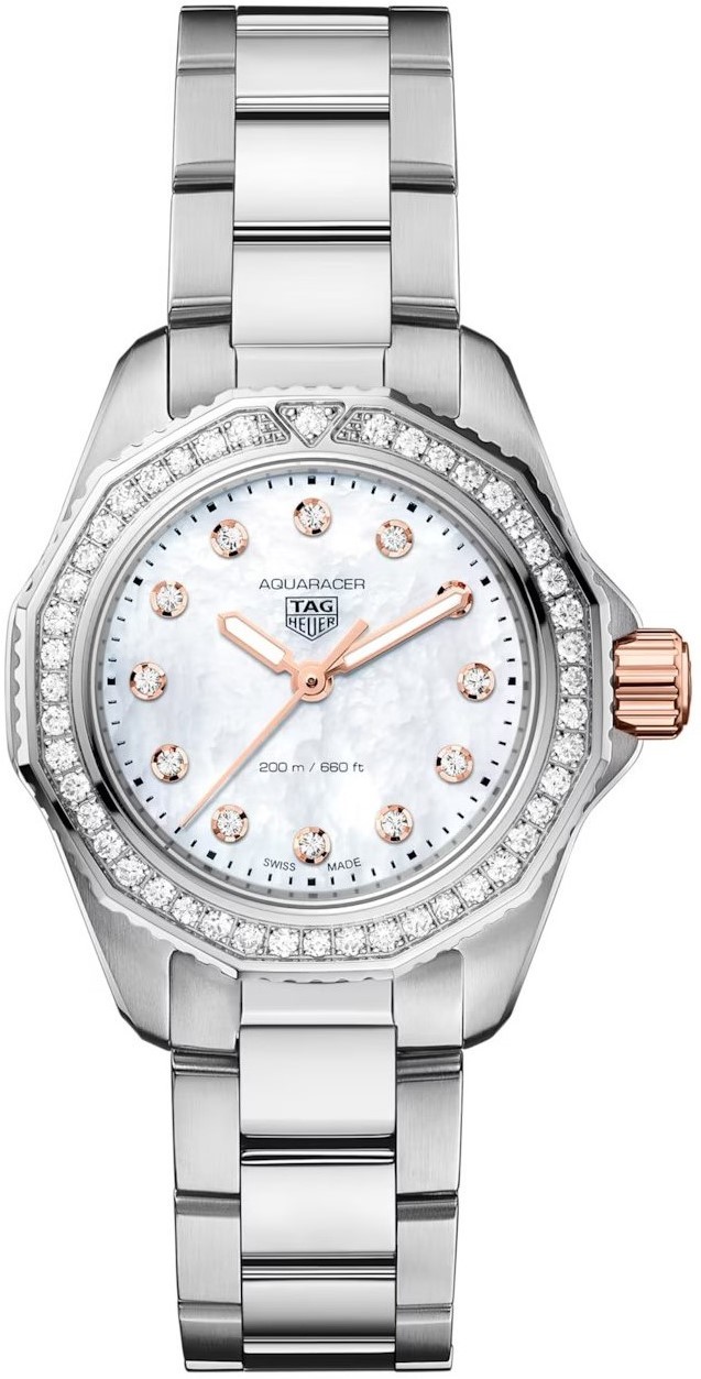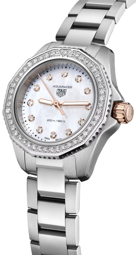 V ponuke značky TAG Heuer nemôžu chýbať potápačské modely. Tie nesú označenie Aquaracer a všetky majú charakteristický dizajn s dvanásťstrannou otočnou lunetou a výraznou korunkou s elegantnou ochranou. V rade Aquaracer nájdeme bohatú paletu modelov, vyberať je možné z mnohých prevedení číselníkov, použitých materiálov a spôsobov spracovania aj radu veľkostí. Modely Aquaracer Professional 200 majú vodotesnosť do 200 metrov a k dispozícii sú s puzdrami s priemerom 30, 34 a 40 milimetrov, sú teda vhodné aj pre užívateľov s menším zápästím. Na výber sú hodinky s quartzovým strojčekom so solárnym pohonom alebo mechanické s automatickým náťahom. Modely Aquaracer Professional 300 sú k dispozícii s oceľovými alebo titánovými puzdrami s priemerom 36, 42 alebo 43 milimetrov. Ako názov napovedá hodinky disponujú vodotesnosťou 300 metrov. Na špičke radu potom stojí titánový model Aquaracer Professional 1000 Superdiver s vodotesnosťou 1000 metrov.