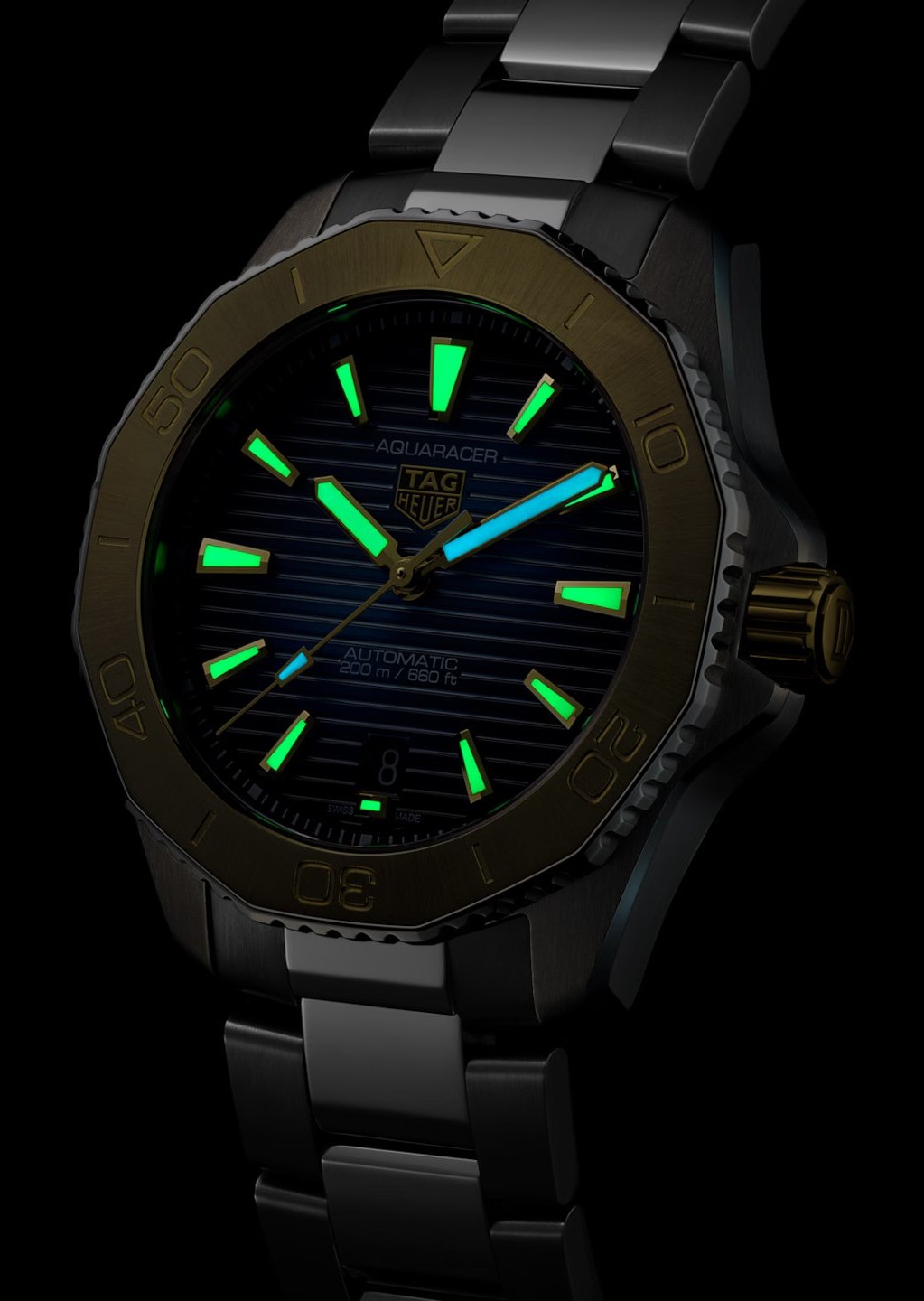 V ponuke značky TAG Heuer nemôžu chýbať potápačské modely. Tie nesú označenie Aquaracer a všetky majú charakteristický dizajn s dvanásťstrannou otočnou lunetou a výraznou korunkou s elegantnou ochranou. V rade Aquaracer nájdeme bohatú paletu modelov, vyberať je možné z mnohých prevedení číselníkov, použitých materiálov a spôsobov spracovania aj radu veľkostí. Modely Aquaracer Professional 200 majú vodotesnosť do 200 metrov a k dispozícii sú s puzdrami s priemerom 30, 34 a 40 milimetrov, sú teda vhodné aj pre užívateľov s menším zápästím. Na výber sú hodinky s quartzovým strojčekom so solárnym pohonom alebo mechanické s automatickým náťahom. Modely Aquaracer Professional 300 sú k dispozícii s oceľovými alebo titánovými puzdrami s priemerom 36, 42 alebo 43 milimetrov. Ako názov napovedá hodinky disponujú vodotesnosťou 300 metrov. Na špičke radu potom stojí titánový model Aquaracer Professional 1000 Superdiver s vodotesnosťou 1000 metrov.