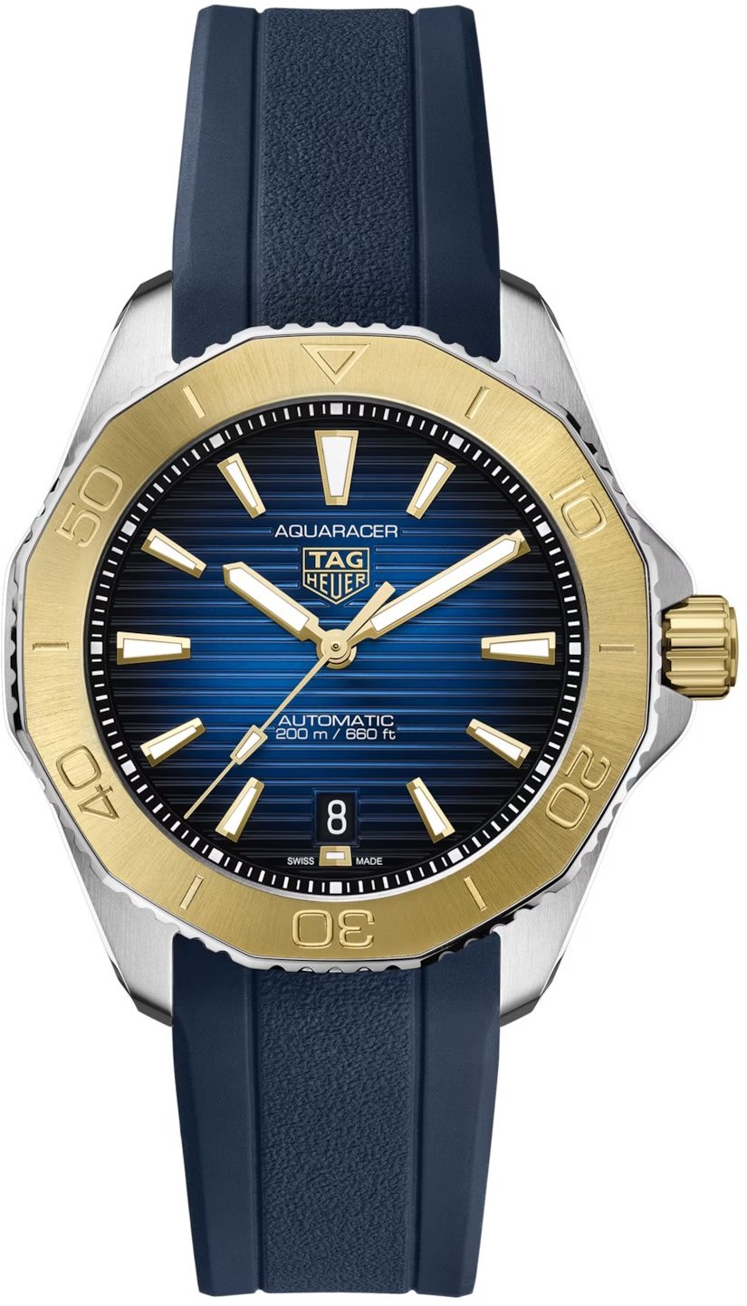 V ponuke značky TAG Heuer nemôžu chýbať potápačské modely. Tie nesú označenie Aquaracer a všetky majú charakteristický dizajn s dvanásťstrannou otočnou lunetou a výraznou korunkou s elegantnou ochranou. V rade Aquaracer nájdeme bohatú paletu modelov, vyberať je možné z mnohých prevedení číselníkov, použitých materiálov a spôsobov spracovania aj radu veľkostí. Modely Aquaracer Professional 200 majú vodotesnosť do 200 metrov a k dispozícii sú s puzdrami s priemerom 30, 34 a 40 milimetrov, sú teda vhodné aj pre užívateľov s menším zápästím. Na výber sú hodinky s quartzovým strojčekom so solárnym pohonom alebo mechanické s automatickým náťahom. Modely Aquaracer Professional 300 sú k dispozícii s oceľovými alebo titánovými puzdrami s priemerom 36, 42 alebo 43 milimetrov. Ako názov napovedá hodinky disponujú vodotesnosťou 300 metrov. Na špičke radu potom stojí titánový model Aquaracer Professional 1000 Superdiver s vodotesnosťou 1000 metrov.