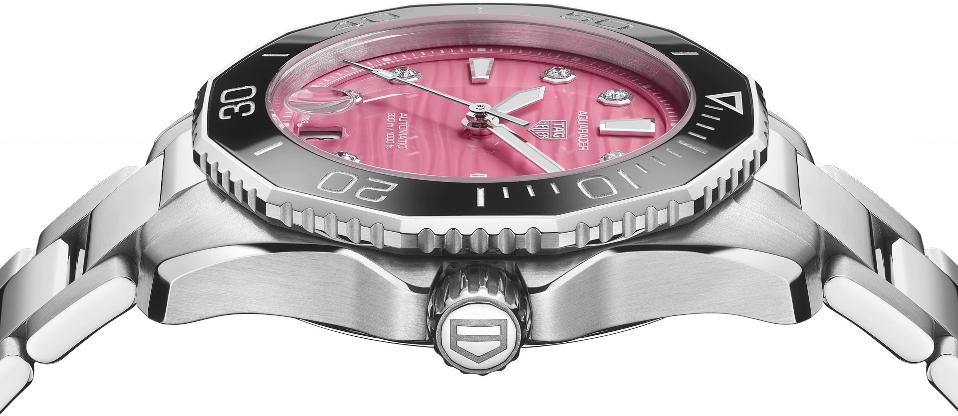 V ponuke značky TAG Heuer nemôžu chýbať potápačské modely. Tie nesú označenie Aquaracer a všetky majú charakteristický dizajn s dvanásťstrannou otočnou lunetou a výraznou korunkou s elegantnou ochranou. V rade Aquaracer nájdeme bohatú paletu modelov, vyberať je možné z mnohých prevedení číselníkov, použitých materiálov a spôsobov spracovania aj radu veľkostí. Modely Aquaracer Professional 200 majú vodotesnosť do 200 metrov a k dispozícii sú s puzdrami s priemerom 30, 34 a 40 milimetrov, sú teda vhodné aj pre užívateľov s menším zápästím. Na výber sú hodinky s quartzovým strojčekom so solárnym pohonom alebo mechanické s automatickým náťahom. Modely Aquaracer Professional 300 sú k dispozícii s oceľovými alebo titánovými puzdrami s priemerom 36, 42 alebo 43 milimetrov. Ako názov napovedá hodinky disponujú vodotesnosťou 300 metrov. Na špičke radu potom stojí titánový model Aquaracer Professional 1000 Superdiver s vodotesnosťou 1000 metrov.