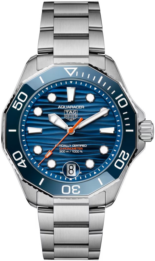 V ponuke značky TAG Heuer nemôžu chýbať potápačské modely. Tie nesú označenie Aquaracer a všetky majú charakteristický dizajn s dvanásťstrannou otočnou lunetou a výraznou korunkou s elegantnou ochranou. V rade Aquaracer nájdeme bohatú paletu modelov, vyberať je možné z mnohých prevedení číselníkov, použitých materiálov a spôsobov spracovania aj radu veľkostí. Modely Aquaracer Professional 200 majú vodotesnosť do 200 metrov a k dispozícii sú s puzdrami s priemerom 30, 34 a 40 milimetrov, sú teda vhodné aj pre užívateľov s menším zápästím. Na výber sú hodinky s quartzovým strojčekom so solárnym pohonom alebo mechanické s automatickým náťahom. Modely Aquaracer Professional 300 sú k dispozícii s oceľovými alebo titánovými puzdrami s priemerom 36, 42 alebo 43 milimetrov. Ako názov napovedá hodinky disponujú vodotesnosťou 300 metrov. Na špičke radu potom stojí titánový model Aquaracer Professional 1000 Superdiver s vodotesnosťou 1000 metrov.