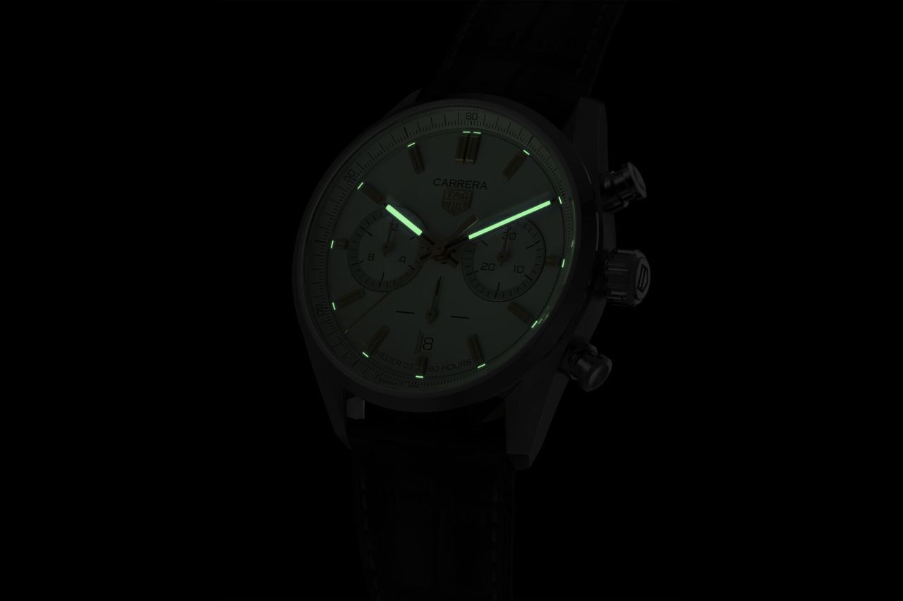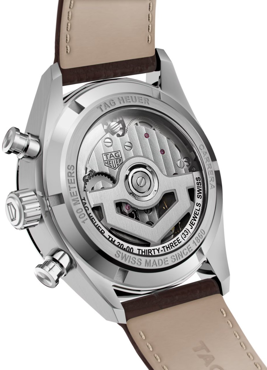 Tag Heuer Carrera Chronograph CBN2013.FC6483 sú pánske luxusné športové automatické hodinky na hnedom remienku z aligátora kože s preklápacou sponou. Puzdro z nerezovej ocele má priemer 42 milimetrov a priehľadné viečko ponúkajúce pohľad na strojček dekorovaný ženevskými pruhmi. Biely číselník s ukazovateľom dátumu, dvoma sčítačmi stopiek a priebežnou sekundovou rúčkou je chránený odolným zafírovým sklom. Ručičky a body pri indexoch sú ošetrené náterom Super-LumiNova®, ktorý garantuje perfektnú čitateľnosť za zhoršených svetelných podmienok. Pohon zaisťuje švajčiarsky manufaktúrny mechanický stroj Heuer 02 s automatickým náťahom a rezervou chodu 80 hodín. S vodotesnosťou 10 ATM sú hodinky vhodné na plávanie a šnorchlovanie.