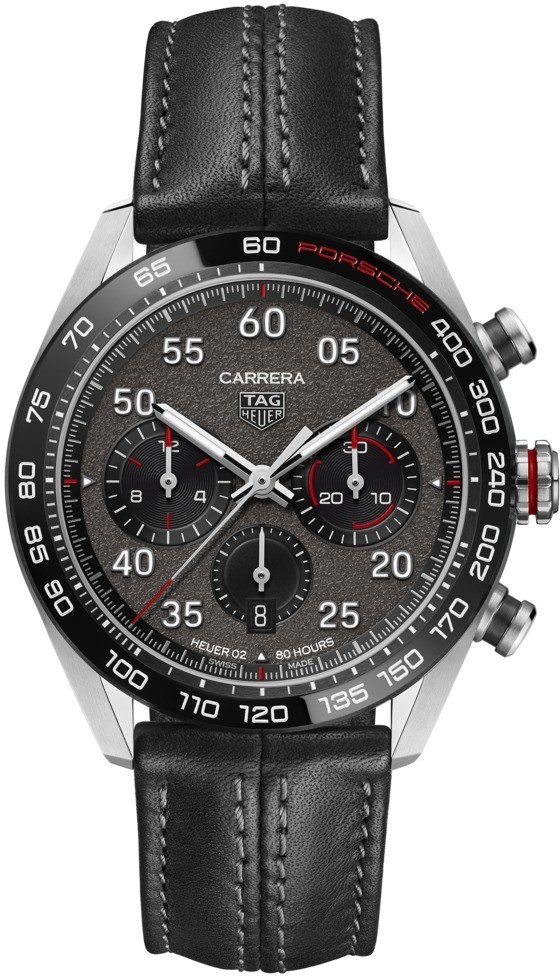 Na prvý pohľad zaujme červený nápis Porsche na lunete hodiniek a výrazné číselné hodinové indexy odkazujúce na palubné dosky športových vozidiel automobilky zo Stuttgartu. Rotor manufaktúrneho kalibru 02 je potom vytvorený v podobe volantu a jeho design samozrejme zodpovedá tomu, ktorý nájdete v automobiloch Carrera. Asfaltový reliéf číselníka bol vytvorený špeciálne pre túto edíciu a dokonale vyjadruje vášeň pre pretekanie.