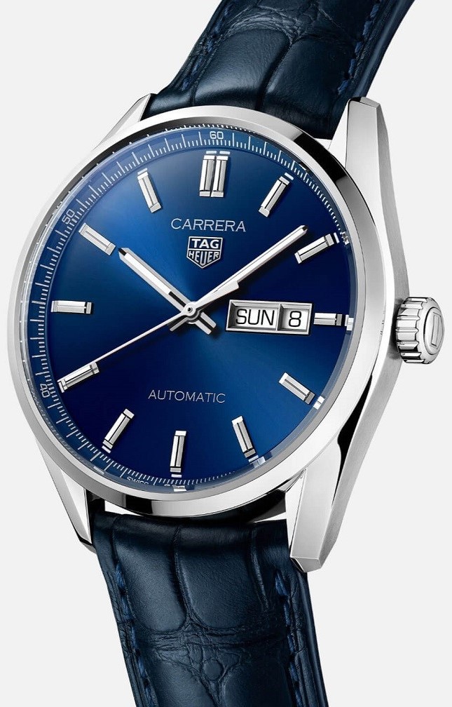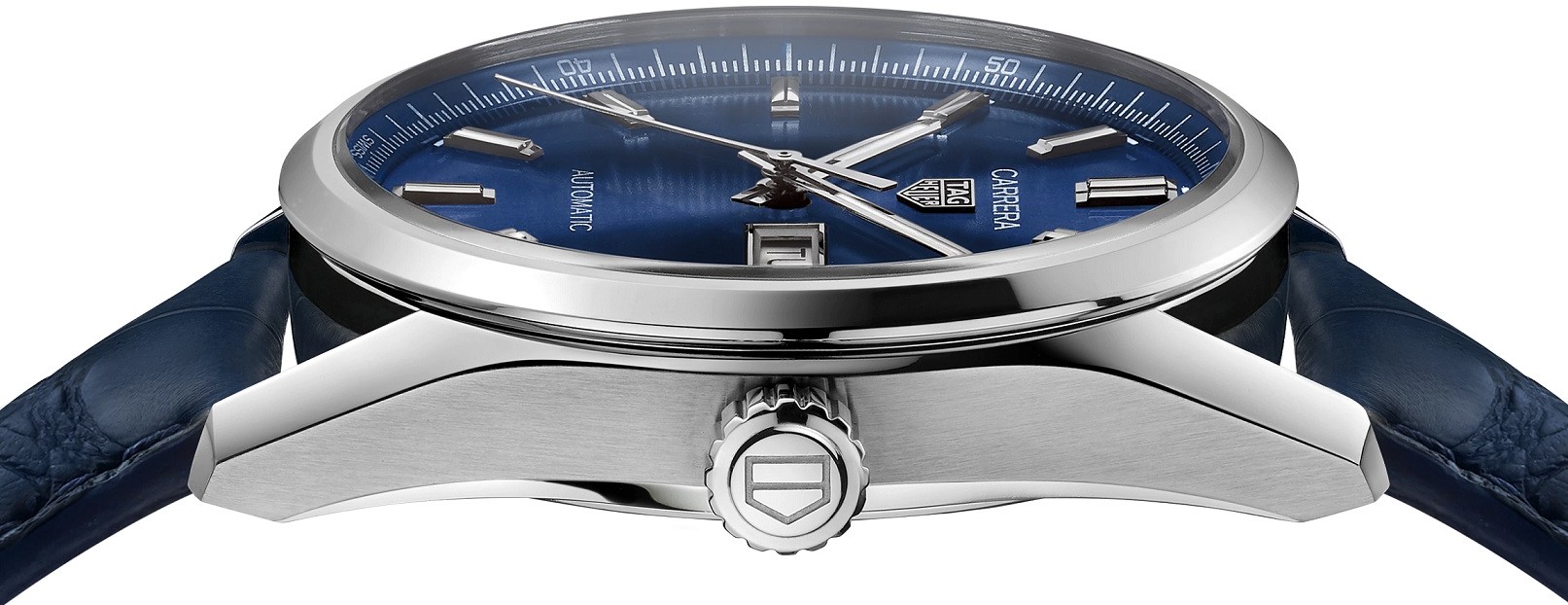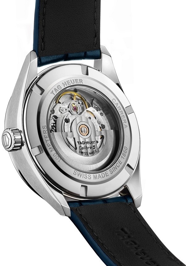 Tag Heuer Carrera WBN2012.FC6502 sú pánske elegantné automatické hodinky na modrom remienku z aligátora kože s preklápacou sponou. Puzdro z nerezovej ocele má priemer 41 milimetrov a priehľadné viečko ponúkajúce pohľad na strojček dekorovaný ženevskými pruhmi a perlážou. Tmavomodrý číselník s efektom slnečného brusu a ukazovateľom dňa a dátumu na tretej hodine je chránený odolným zafírovým sklom s antireflexnou vrstvou. Ručičky a aplikované indexy sú ošetrené náterom Super-LumiNova®, ktorý garantuje perfektnú čitateľnosť za zhoršených svetelných podmienok. Pohon zaisťuje švajčiarsky mechanický stroj Calibre 5 s automatickým náťahom a rezervou chodu 38 hodín. S vodotesnosťou 10 ATM sú hodinky vhodné na plávanie a šnorchlovanie.