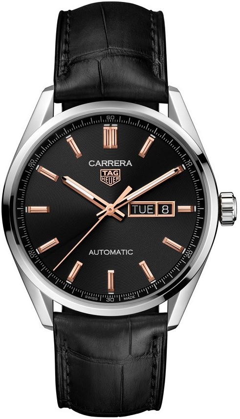 Tag Heuer Carrera WBN2013.FC6503 sú pánske elegantné automatické hodinky na čiernom remienku z aligátora kože s preklápacou sponou. Puzdro z nerezovej ocele má priemer 41 milimetrov a priehľadné viečko ponúkajúce pohľad na strojček dekorovaný ženevskými pruhmi a perlážou. Čierny číselník s efektom slnečného brusu a ukazovateľom dňa a dátumu na tretej hodine je chránený odolným zafírovým sklom s antireflexnou vrstvou. Ručičky a aplikované indexy sú ošetrené náterom Super-LumiNova®, ktorý garantuje perfektnú čitateľnosť za zhoršených svetelných podmienok. Pohon zaisťuje švajčiarsky mechanický stroj Calibre 5 s automatickým náťahom a rezervou chodu 38 hodín. S vodotesnosťou 10 ATM sú hodinky vhodné na plávanie a šnorchlovanie.