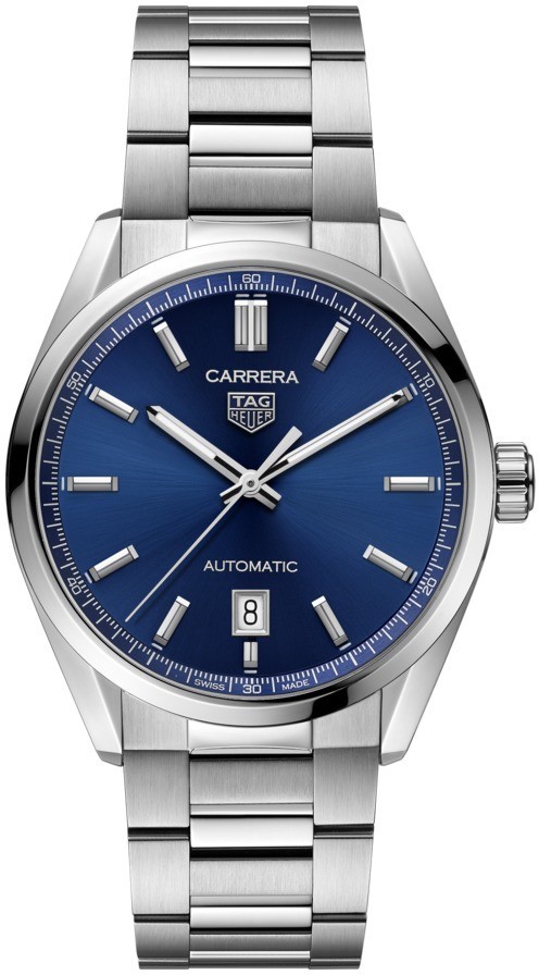Tag Heuer Carrera WBN2112.BA0639 sú pánske luxusné automatické hodinky v klasickom štýle na oceľovom náramku s preklápacou sponou. Puzdro z nerezovej ocele má priemer 39 milimetrov a priehľadné viečko ponúkajúce pohľad na strojček dekorovaný ženevskými pruhmi a perlážou. Tmavomodrý číselník s efektom slnečného brusu a ukazovateľom dátumu na šiestej hodine je chránený odolným zafírovým sklom s antireflexnou vrstvou. Ručičky a aplikované indexy sú ošetrené náterom Super-LumiNova®, ktorý garantuje perfektnú čitateľnosť za zhoršených svetelných podmienok. Pohon zaisťuje švajčiarsky mechanický stroj Calibre 5 s automatickým náťahom a rezervou chodu 38 hodín. S vodotesnosťou 10 ATM sú hodinky vhodné na plávanie a šnorchlovanie.