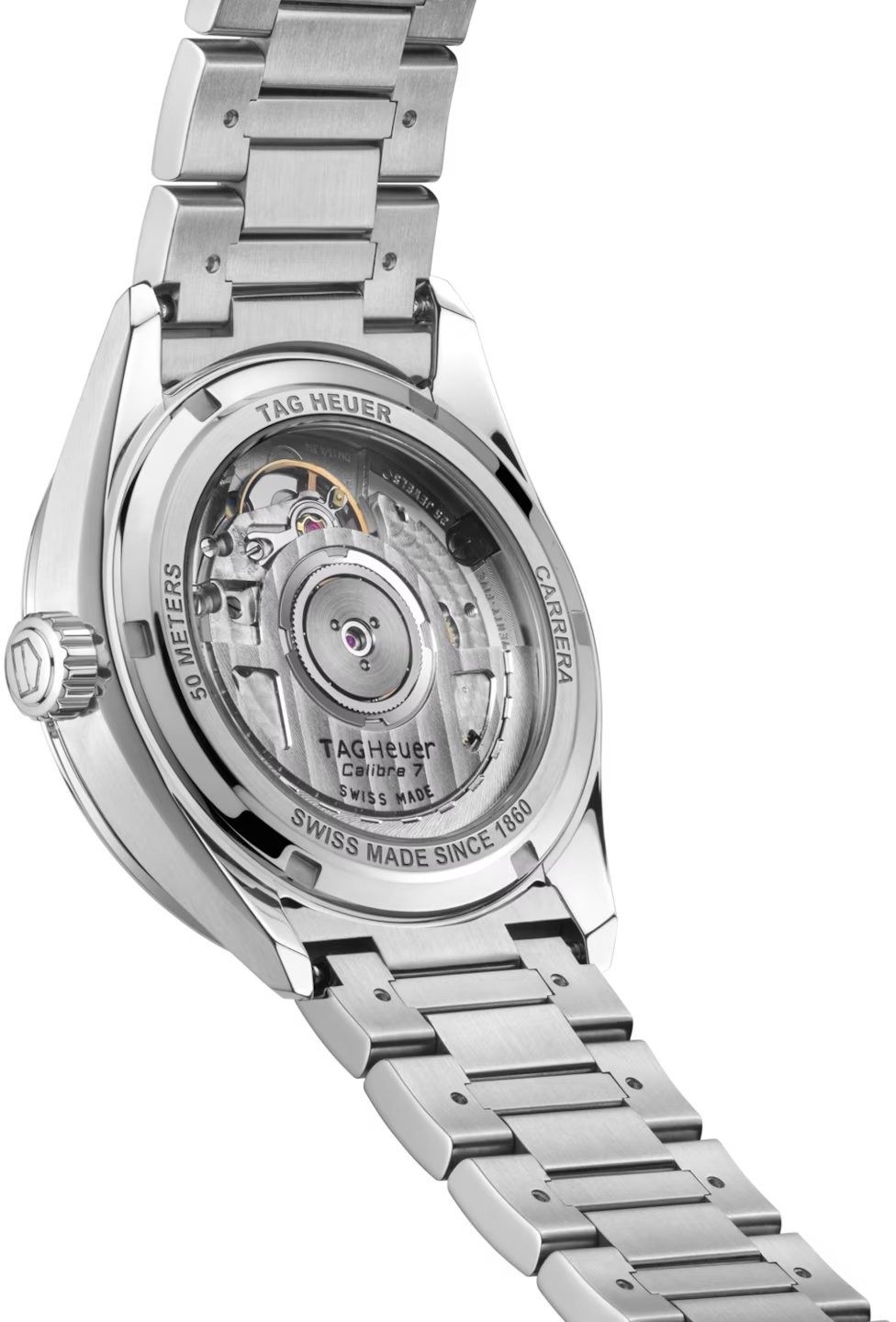 Tag Heuer Carrera WBN2311.BA0001 sú dámske hodinky v klasickom štýle na oceľovom náramku s preklápacou sponou. Puzdro z nerezovej ocele má priemer 36 milimetrov a priehľadné viečko ponúkajúce pohľad na strojček dekorovaný ženevskými pruhmi a perlážou. Tmavomodrý číselník s efektom slnečného brusu a ukazovateľom dátumu na šiestej hodine je chránený odolným zafírovým sklom s antireflexnou vrstvou. Ručičky a aplikované indexy sú ošetrené náterom Super-LumiNova®, ktorý garantuje perfektnú čitateľnosť za zhoršených svetelných podmienok. Pohon zaisťuje švajčiarsky mechanický stroj Calibre 7 s automatickým náťahom a rezervou chodu 56 hodín. S vodotesnosťou 5 ATM sú hodinky odolné proti dažďu a pri sprchovaní.