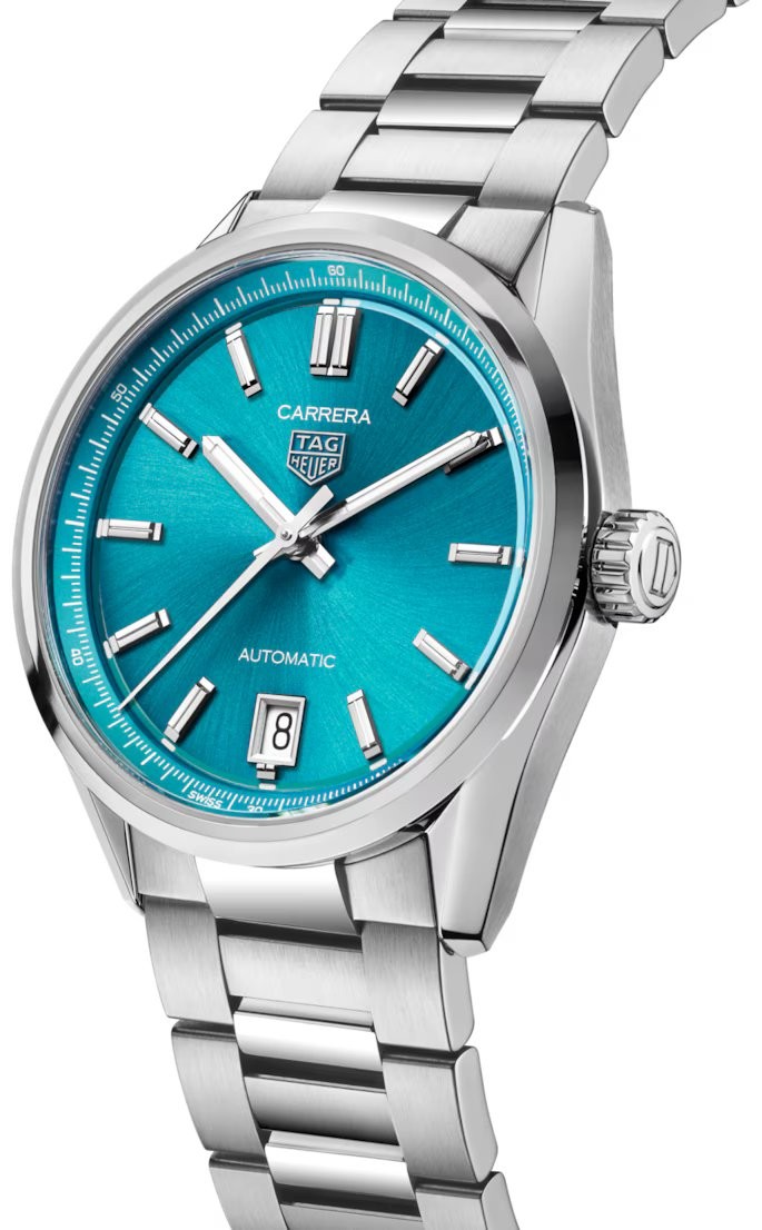 Tag Heuer Carrera WBN2316.BA0001 sú dámske hodinky v klasickom štýle na oceľovom náramku s preklápacou sponou. Puzdro z nerezovej ocele má priemer 36 milimetrov a priehľadné viečko ponúkajúce pohľad na strojček dekorovaný ženevskými pruhmi a perlážou. Svetlomodrý číselník s efektom slnečného brusu a ukazovateľom dátumu na šiestej hodine je chránený odolným zafírovým sklom s antireflexnou vrstvou. Ručičky a aplikované indexy sú ošetrené náterom Super-LumiNova®, ktorý garantuje perfektnú čitateľnosť za zhoršených svetelných podmienok. Pohon zaisťuje švajčiarsky mechanický stroj Calibre 7 s automatickým náťahom a rezervou chodu 56 hodín. S vodotesnosťou 5 ATM sú hodinky odolné proti dažďu a pri sprchovaní.