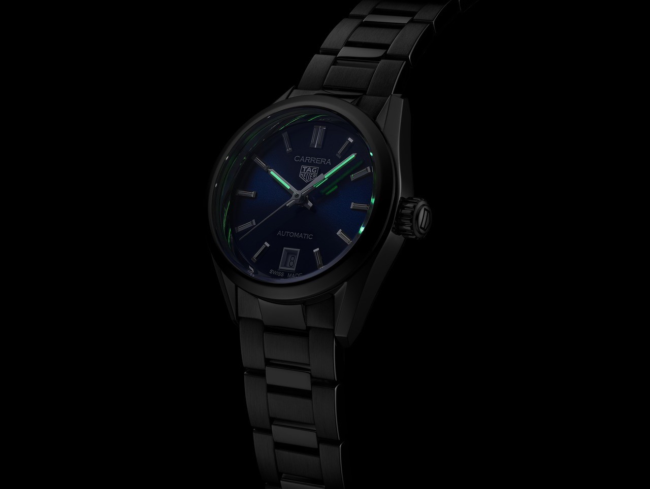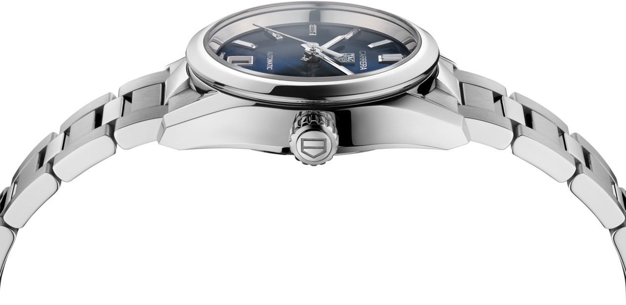 Tag Heuer Carrera WBN2411.BA0621 sú dámske hodinky v klasickom štýle na oceľovom náramku s preklápacou sponou. Puzdro z nerezovej ocele má priemer 29 milimetrov a priehľadné viečko ponúkajúce pohľad na strojček dekorovaný ženevskými pruhmi a perlážou. Modrý číselník s efektom slnečného brusu a ukazovateľom dátumu na šiestej hodine je chránený odolným zafírovým sklom s antireflexnou vrstvou. Ručičky sú ošetrené náterom Super-LumiNova®, ktorý garantuje perfektnú čitateľnosť za zhoršených svetelných podmienok. Pohon zaisťuje švajčiarsky mechanický stroj Calibre 9 s automatickým náťahom a rezervou chodu 40 hodín. S vodotesnosťou 10 ATM sú hodinky vhodné na plávanie a šnorchlovanie.