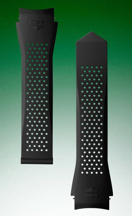 Ďalej tiež kaučukový remienok v bielej farbe opatrený preklápacou sponou a vďaka jeho veľmi jednoduchej výmene sa dá rýchlo získať nový dizajn hodiniek. Hodinky sú vodotesné do 50 metrov a napájané batériou, ktorej úplné nabitie trvá približne 1,5 hodiny.