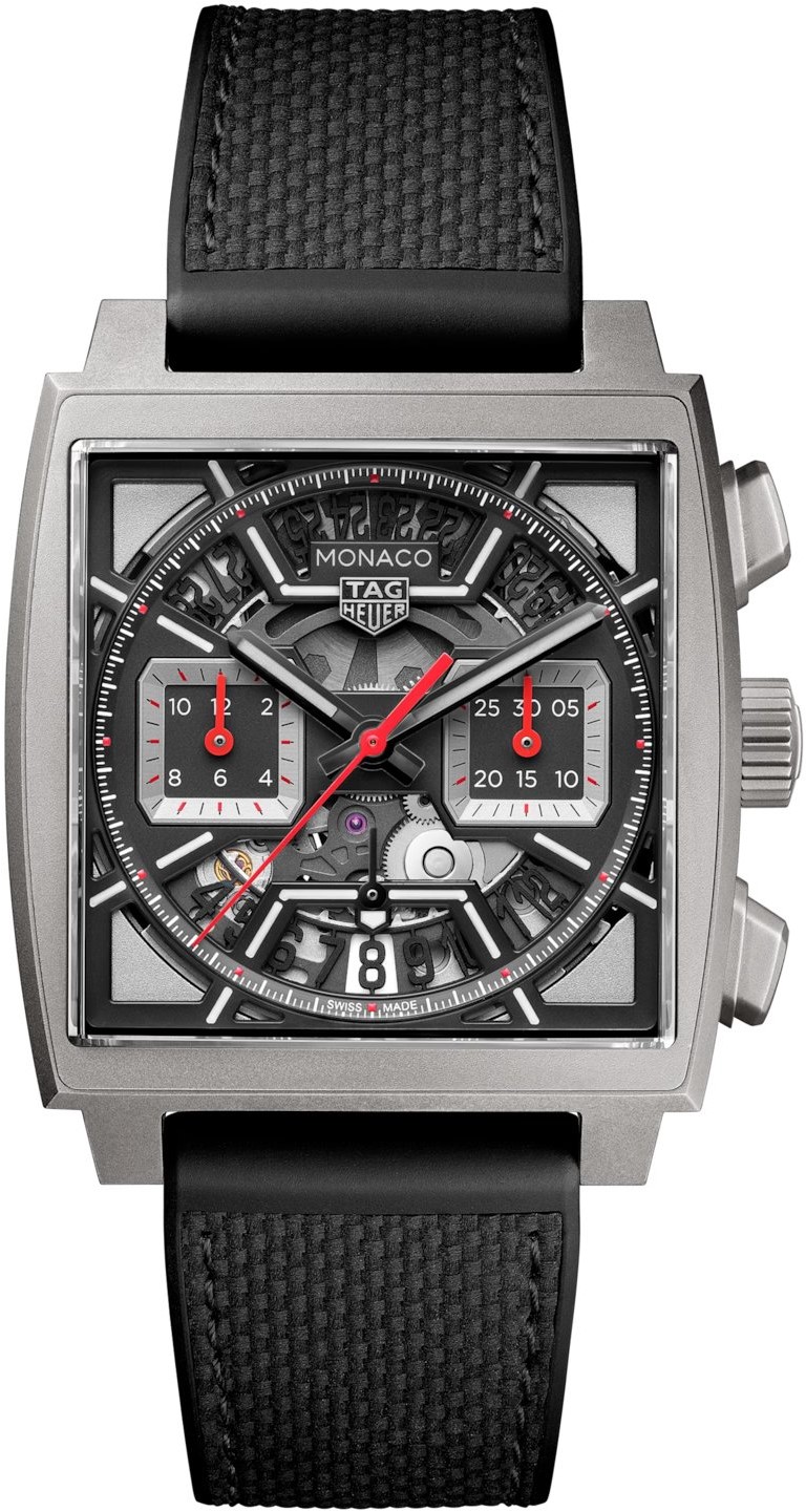 Tag Heuer Monaco CBL2183.FT6236 sú pánske luxusné športové hodinky na čiernom remienku v kombinácii kaučuku, textilu a podšívky z kože s preklápacou sponou. Hranaté titánové púzdro široké 39 milimetrov má priehľadné viečko ponúkajúce pohľad na automatický strojček dekorovaný ženevskými pruhmi. Šedý skeletónový číselník s dátumovkou na šiestej hodine, priebežnou sekundovkou a dvoma subciferníkmi s funkciou stopiek je chránený odolným zafírovým sklom s antireflexnou vrstvou. Ručičky, indexy a ďalšie prvky na číselníku sú ošetrené náterom Super-LumiNova® pre čo najlepšiu možnú čitateľnosť za zhoršených svetelných podmienok. Pohon hodiniek zaisťuje švajčiarsky mechanický manufaktúrny stroj Heuer 02 s automatickým náťahom a rezervou chodu 80 hodín. S vodotesnosťou 10 ATM sú hodinky vhodné na plávanie a šnorchlovanie.