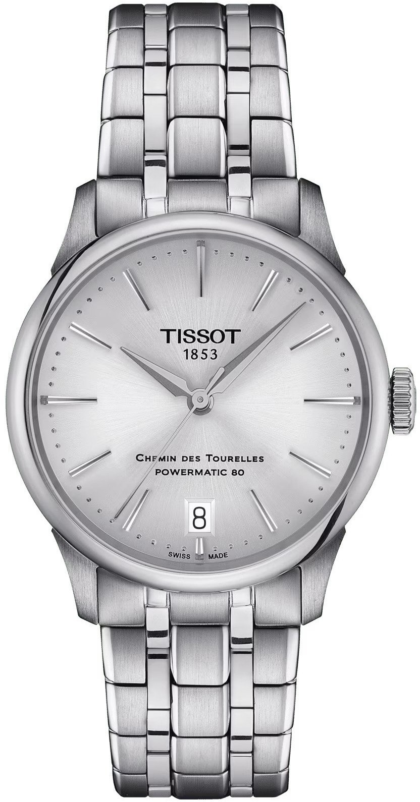 Tissot Chemin des Tourelles Powermatic 80 T139.207.11.031.00 sú dámske automatické hodinky v klasickom štýle na oceľovom náramku s motýlikovou sponou. Puzdro z nerezovej ocele má priemer 34 milimetrov a priehľadné viečko. Strieborný číselník s efektom slnečného brusu a indikáciou dátumu na šiestej hodine je chránený odolným zafírovým sklom s antireflexnou vrstvou. Chod hodiniek zaisťuje mechanický strojček Powermatic 80.111 s automatickým náťahom a rezervou chodu 80 hodín. Tento strojček s funkciou hackingu (zastavenie sekundovej ručičky pri vytiahnutí korunky do krajnej polohy) je možné v prípade potreby naťahovať aj ručne pomocou korunky. S vodotesnosťou 5 ATM sú hodinky odolné proti dažďu a pri sprchovaní.