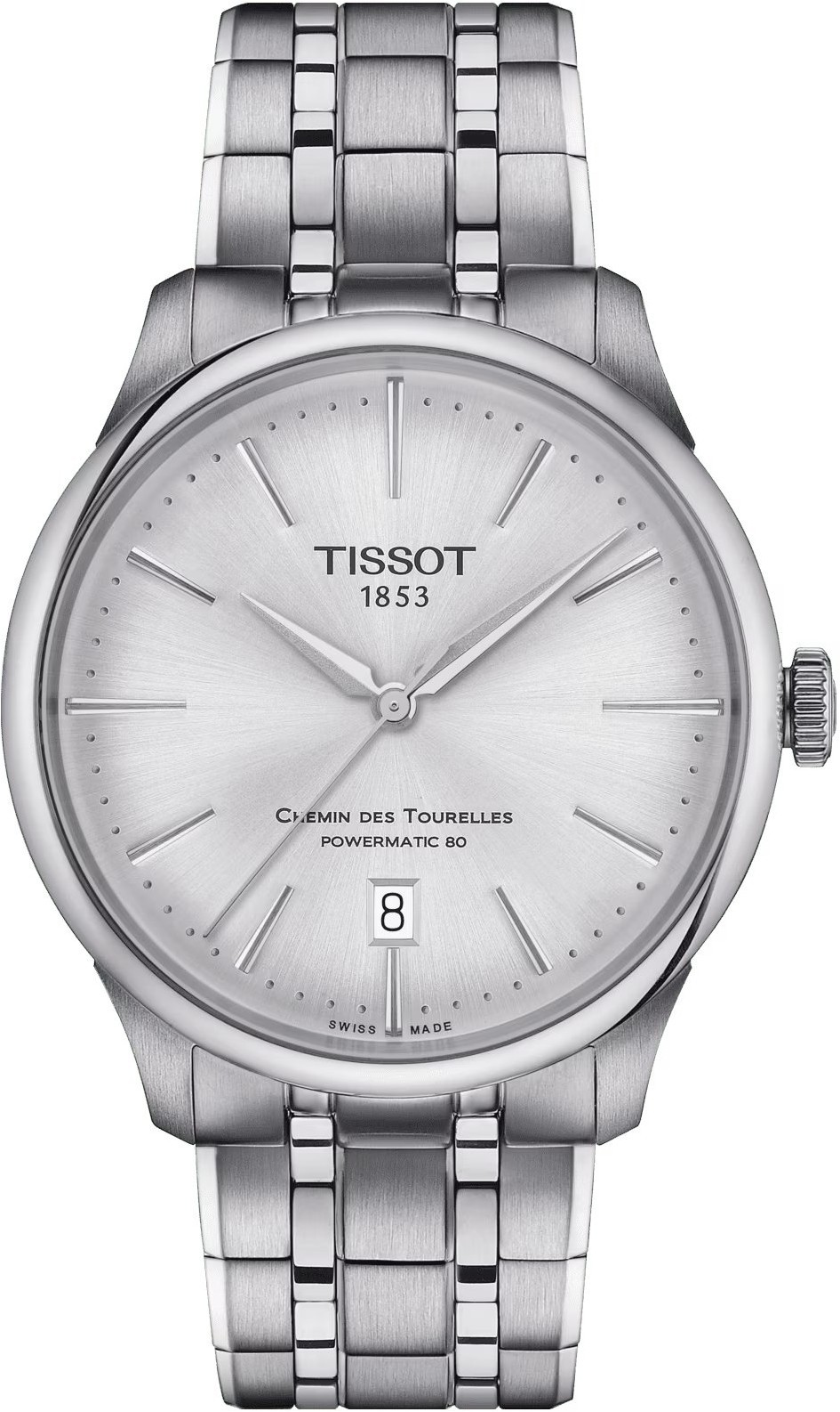 Tissot Chemin des Tourelles Powermatic 80 T139.807.11.031.00 sú unisex automatické hodinky v klasickom štýle na oceľovom náramku s motýlikovou sponou. Puzdro z nerezovej ocele má priemer 39 milimetrov a priehľadné viečko. Strieborný číselník s efektom slnečného brusu a indikáciou dátumu na šiestej hodine je chránený odolným zafírovým sklom s antireflexnou vrstvou. Chod hodiniek zaisťuje mechanický strojček Powermatic 80.111 s automatickým náťahom a rezervou chodu 80 hodín. Tento strojček s funkciou hackingu (zastavenie sekundovej rúčky pri vytiahnutí korunky do krajnej polohy) je možné v prípade potreby naťahovať aj ručne pomocou korunky. S vodotesnosťou 5 ATM sú hodinky odolné proti dažďu a pri sprchovaní.