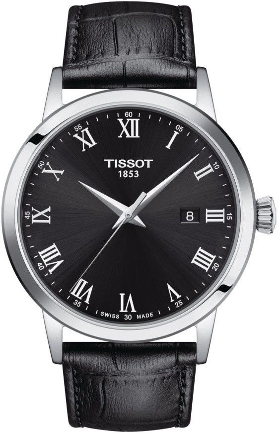 Tissot Classic Dream Gent T129.410.16.053.00 sú pánske elegantné batériové hodinky na čiernom koženom remienku s tŕňovou sponou. Puzdro z nerezovej ocele má priemer 42 milimetrov. Prehľadný čierny číselník s efektom slnečného brusu a ukazovateľom dátumu na tretej hodine je chránený odolným zafírovým sklom. Pohon hodiniek zaisťuje quartzový strojček ETA F06.115 s funkciou indikácie slabej batérie. S vodotesnosťou 5 ATM sú hodinky odolné proti dažďu a pri sprchovaní.