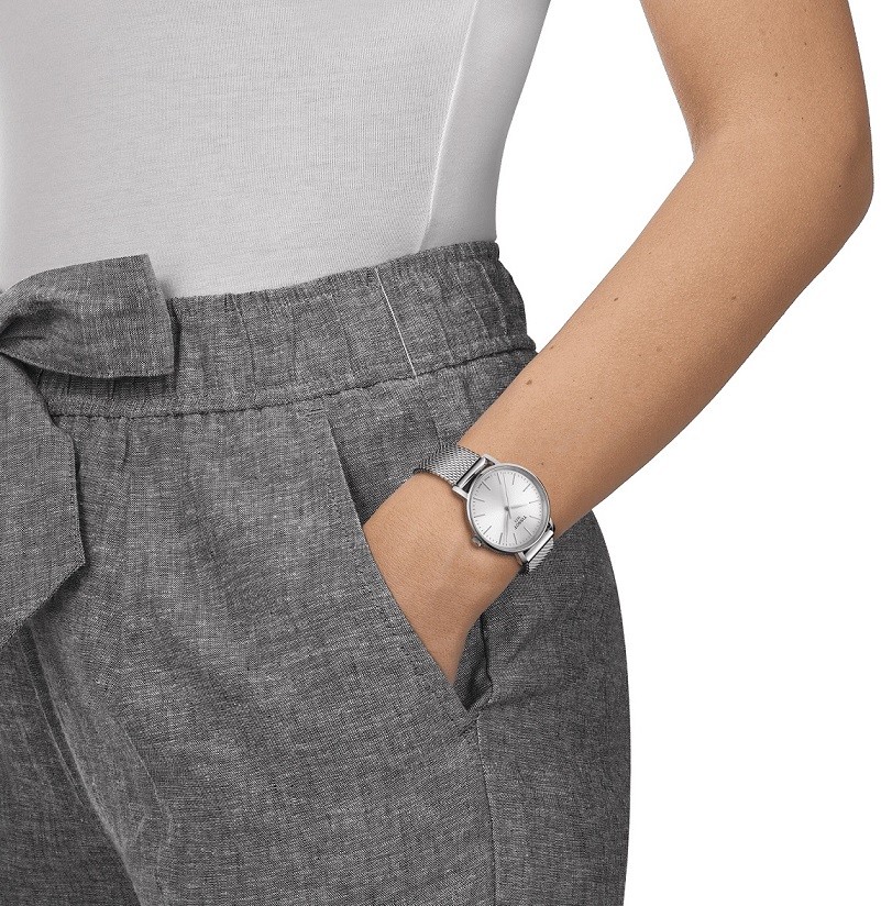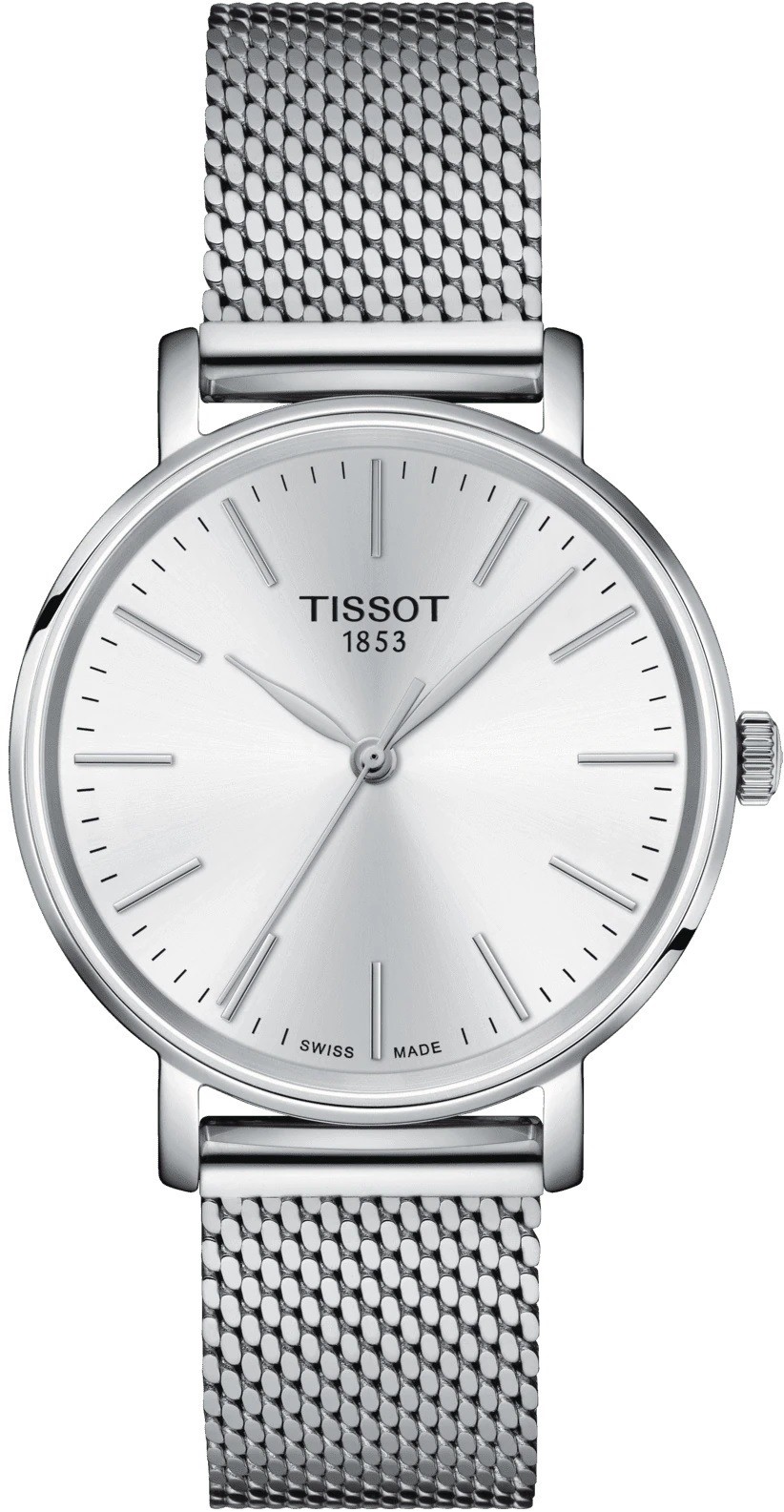 Tissot Everytime Lady T143.210.11.011.00 sú dámske elegantné batériové hodinky na oceľovom milánskom ťahu s posuvnou sponou. Puzdro z nerezovej ocele má priemer 34 milimetrov. Strieborný číselník s efektom slnečného brusu je chránený odolným zafírovým sklom. Pohon hodiniek zaisťuje quartzový strojček ETA F05.412 PreciDrive s presnosťou ± 10 sekúnd za rok. S vodotesnosťou 5 ATM sú hodinky odolné proti dažďu a pri sprchovaní.