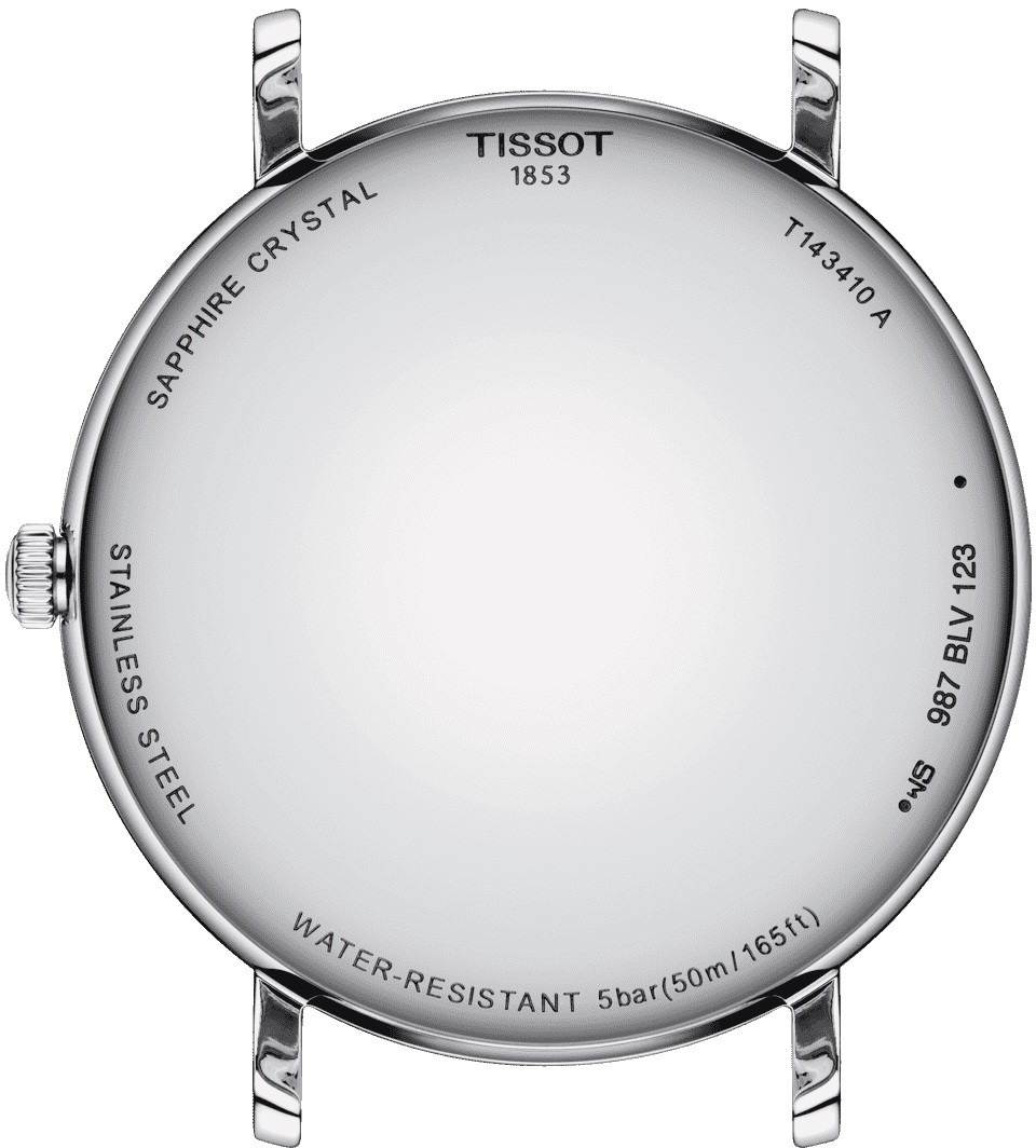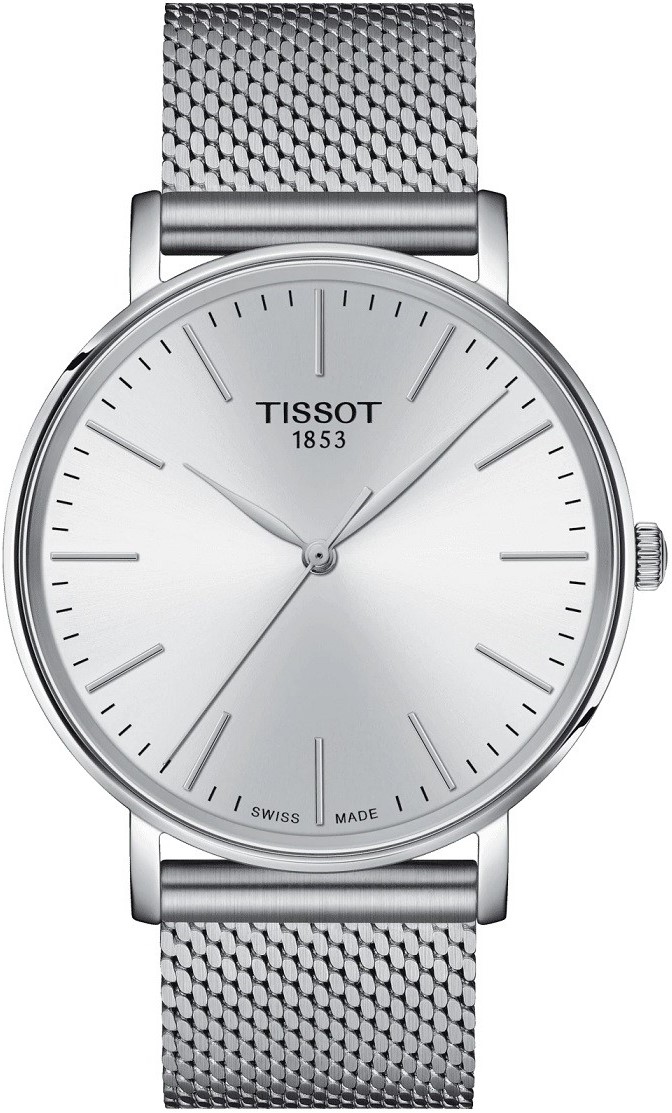 Tissot Everytime T143.410.11.011.00 sú pánske elegantné batériové hodinky na oceľovom milánskom ťahu s posuvnou sponou. Puzdro z nerezovej ocele má priemer 40 milimetrov. Strieborný číselník s efektom slnečného brusu je chránený odolným zafírovým sklom. Pohon hodiniek zaisťuje quartzový strojček ETA F06.412 PreciDrive s presnosťou ± 10 sekúnd za rok a funkciou indikácie slabej batérie. S vodotesnosťou 5 ATM sú hodinky odolné proti dažďu a pri sprchovaní.