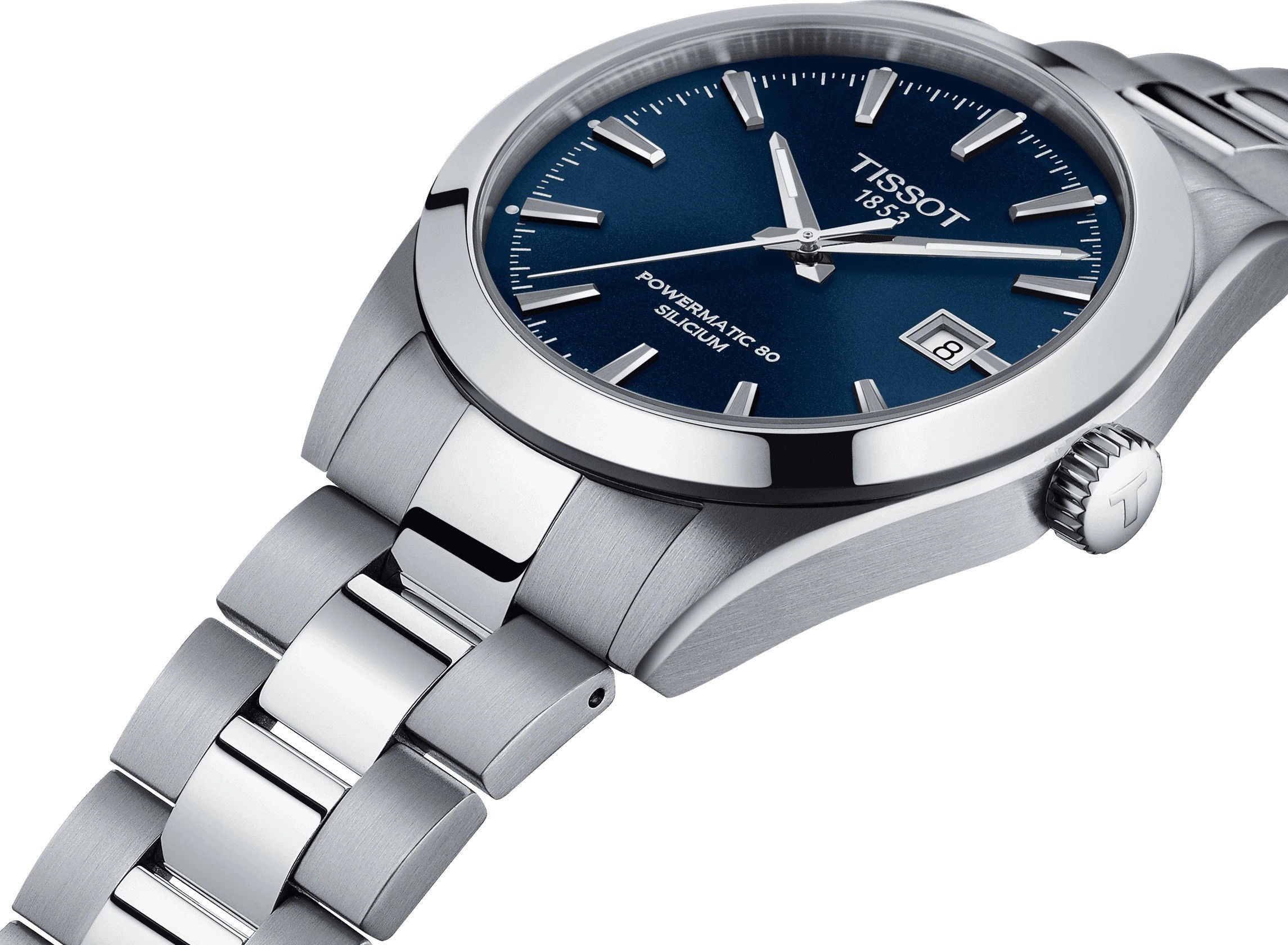 Tissot Gentleman Powermatic 80 Silicium T127.407.11.041.00 sú pánske automatické hodinky na oceľovom náramku v kombinácii brusu a lesku s motýlikovou sponou. Puzdro z nerezovej ocele má priemer 40 milimetrov a priehľadné viečko. Modrý číselník s efektom slnečného brusu a indikáciou dátumu je chránený odolným zafírovým sklom s antireflexnou vrstvou. Aplikované hodinové indexy sú rovnaké ako ručičky pokryté luminiscenčným náterom Super-LumiNova®, ktorý garantuje perfektnú čitateľnosť za zhoršených svetelných podmienok. Pohon hodiniek zaisťuje mechanický strojček Powermatic 80.811 s automatickým náťahom a rezervou chodu približne 80 hodín, ktorý disponuje funkciou hackingu (zastavenie sekundovej ručičky pri vytiahnutí korunky do krajnej polohy) a je možné ho v prípade potreby naťahovať aj ručne pomocou korunky. Vďaka použitiu kremíkového antimagnetického vlásku zotrvačky je tento kaliber vysoko odolný voči vplyvom magnetického poľa. S vodotesnosťou 10 ATM sú hodinky vhodné na kúpanie alebo šnorchlovanie.