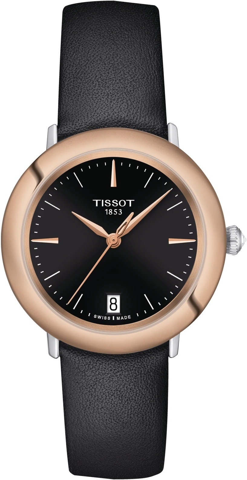 Tissot Glendora 18k Gold T929.210.46.051.00 sú dámske elegantné batériové hodinky na čiernom koženom remienku s motýlikovou sponou. Puzdro z nerezovej ocele má priemer 33 milimetrov a lunetu vyrobenú z 18 karátového zlata. Čierny číselník s efektom slnečného brusu a ukazovateľom dátumu je chránený odolným zafírovým sklom. Pohon hodiniek zaisťuje quartzový strojček ETA F05.115 s funkciou indikácie slabej batérie. S vodotesnosťou 3 ATM sú hodinky odolné proti dažďu a pri umývaní rúk.