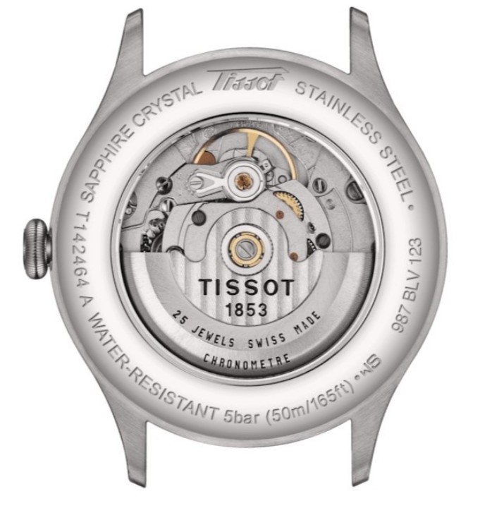 Tissot Heritage 1938 T142.464.16.032.00 jsou pánské elegantní automatické hodinky na tmavě modrém koženém řemínku s trnovou sponou. Pouzdro z nerezové oceli má průměr 39 milimetrů a průhledné dýnko. Přehledný bílý číselník je chráněn odolným safírovým sklem s antireflexní vrstvou. Chod hodinek zajišťuje švýcarský mechanický strojek ETA 2824-2 s automatickým nátahem a rezervou chodu 38 hodin. Díky vysoké přesnosti získal tento strojek certifikát chronometru (C.O.S.C). S vodotěsností 5 ATM jsou hodinky odolné proti dešti a při sprchování. Součástí balení je navíc ocelový milánský tah.