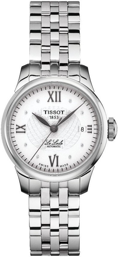 Tissot Le Locle Automatic Lady T41.1.183.16 sú dámske automatické hodinky v klasickom štýle na oceľovom náramku s motýlikovou sponou. Puzdro z nerezovej ocele má priemer 25,3 milimetra. Biely štruktúrovaný číselník s ukazovateľom dátumu na tretej hodine a 8 diamantmi s hmotnosťou 0,01 ct a čistote VS-SI je chránený odolným zafírovým sklom. Pohon hodiniek zaisťuje mechanický strojček ETA 2671 s automatickým náťahom a rezervou chodu 38 hodín. S vodotesnosťou 3 ATM sú hodinky odolné proti dažďu a pri umývaní rúk.