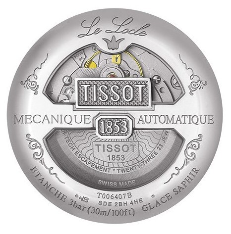 Tissot Le Locle Powermatic 80 T006.407.11.053.00 sú pánske automatické hodinky v klasickom štýle na oceľovom náramku s motýlikovou sponou. Puzdro z nerezovej ocele má priemer 39,3 milimetra a priehľadné viečko. Čierny štruktúrovaný číselník s ukazovateľom dátumu na tretej hodine je chránený odolným zafírovým sklom. Pohon hodiniek zaisťuje mechanický strojček Powermatic 80.111 s automatickým náťahom a rezervou chodu 80 hodín. S vodotesnosťou 3 ATM sú hodinky odolné proti dažďu a pri umývaní rúk.