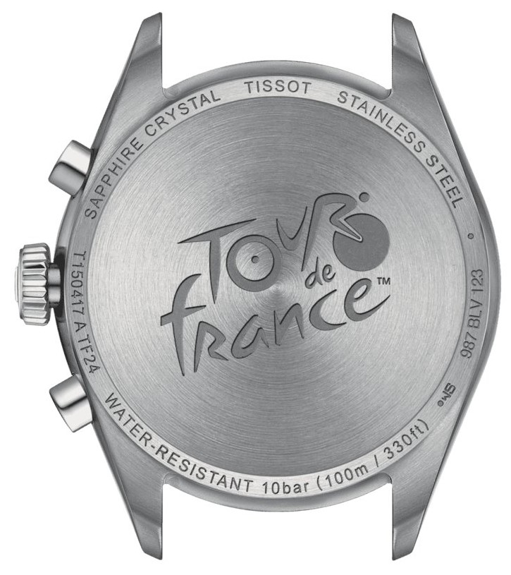 Tissot PR 100 Tour de France Edition 2024 T150.417.11.051.00 sú pánske hodinky na brúsenom oceľovom náramku s motýlikovou sponou. Puzdro z nerezovej ocele má priemer 40 milimetrov. Jedná sa o edíciu odkazujúcu na spoluprácu značky s najpopulárnejšími cyklistickými pretekmi sveta Tour de France, ktorého logo zdobí zadnú stranu puzdra hodiniek. Na číselníku v asfaltovej čiernej farbe inšpirovanej vozovkou vynikajú ručičky chronografu v ikonickej žltej farbe a predovšetkým centrálna sekundová ručička zakončená motívom závodného bicykla. Zrnitý číselník s chronografom a ukazovateľom dátumu je chránený odolným zafírovým sklíčkom. Ručičky a indexy sú potiahnuté luminiscenčnou vrstvou Super-LumiNova®, ktorá garantuje perfektnú čitateľnosť za zhoršených svetelných podmienok. Pohon hodiniek zaisťuje quartzový strojček ETA G10.212 s presnosťou +/- 10 sekúnd za rok a indikáciou slabej batérie. S vodotesnosťou 10 ATM sú hodinky vhodné na kúpanie alebo šnorchlovanie. Súčasťou balenia je náhradný čierno-žltý remienok z gumy a kože s textúrou rukoväťou riadidiel bicyklov.