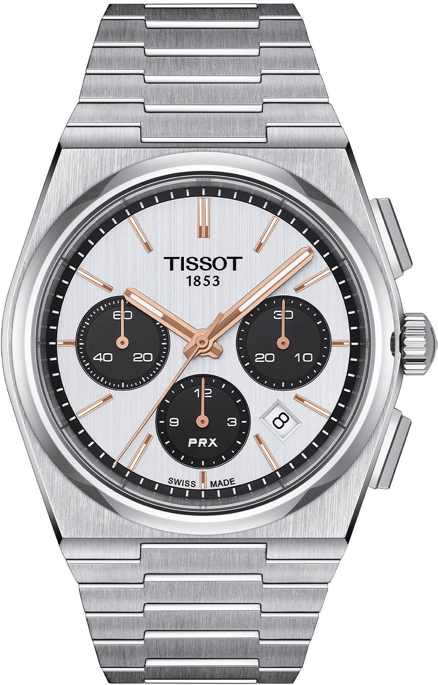 Tissot PRX Automatic Chronograph 80 T137.427.11.011.00 sú pánske automatické hodinky na integrovanom oceľovom náramku s brúsenou povrchovou úpravou a motýlikovou sponou. Puzdro z nerezovej ocele má priemer 42 milimetrov a priehľadné viečko. Strieborno-čierny číselník s indikáciou dátumu a chronografom je chránený odolným zafírovým sklom s antireflexnou vrstvou. Aplikované hodinové indexy sú rovnako ako ručičky pokryté luminiscenčným náterom Super-LumiNova®, ktorý garantuje perfektnú čitateľnosť za zhoršených svetelných podmienok. Pohon hodiniek zaisťuje mechanický strojček Valjoux A05.H31 s automatickým náťahom a rezervou chodu približne 60 hodín. Vďaka použitiu antimagnetického vlásku zotrvačky Nivachron™ z titánovej zliatiny, na ktorého vývoji sa spolu so Swatch Group podieľala manufaktúra Audemars Piguet, je tento kaliber vysoko odolný voči vplyvom magnetického poľa. Tento strojček s funkciou hackingu možno v prípade potreby naťahovať aj ručne pomocou signovanej korunky. Vodotesnosť hodiniek je 10 ATM a sú vhodné na kúpanie alebo šnorchlovanie.