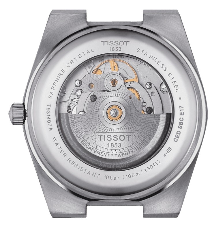 Tissot PRX Powermatic 80 T931.407.41.031.00 sú pánske automatické hodinky na integrovanom oceľovom náramku s brúsenou povrchovou úpravou a motýlikovou sponou. Puzdro z nerezovej ocele má priemer 40 milimetrov, priehľadné viečko a lunetu z 18k ružového zlata. Strieborný číselník s efektom slnečného brusu a indikáciou dátumu je chránený odolným zafírovým sklom s antireflexnou vrstvou. Aplikované hodinové indexy sú rovnako ako ručičky pokryté luminiscenčným náterom Super-LumiNova®, ktorý garantuje perfektnú čitateľnosť za zhoršených svetelných podmienok. Pohon hodiniek zaisťuje mechanický strojček Powermatic 80.111 s automatickým náťahom a rezervou chodu približne 80 hodín. Vďaka použitiu antimagnetického vlásku zotrvačky Nivachron™ z titánovej zliatiny, na ktorého vývoji sa spolu so Swatch Group podieľala manufaktúra Audemars Piguet, je tento kaliber vysoko odolný voči vplyvom magnetického poľa. Tento strojček s funkciou hackingu možno v prípade potreby naťahovať aj ručne pomocou signovanej korunky. Vodotesnosť hodiniek je 10 ATM a sú vhodné na kúpanie alebo šnorchlovanie.