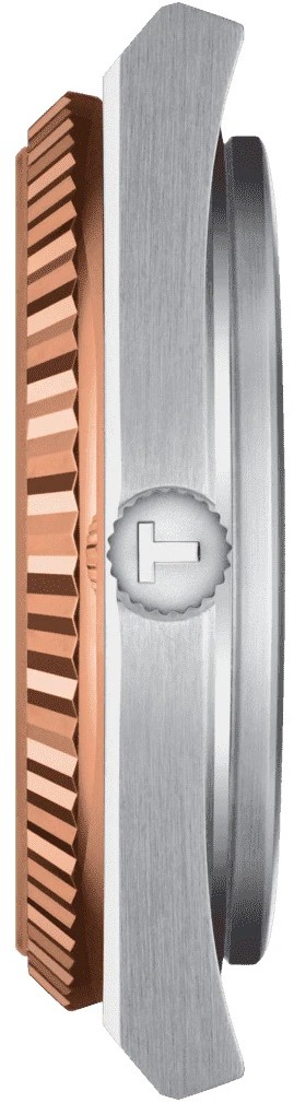 Tissot PRX Powermatic 80 T931.407.41.291.00 sú pánske automatické hodinky na integrovanom oceľovom náramku s brúsenou povrchovou úpravou a motýlikovou sponou. Puzdro z nerezovej ocele má priemer 40 milimetrov, priehľadné viečko a lunetu z 18k ružového zlata. Hnedý číselník s efektom slnečného brusu a indikáciou dátumu je chránený odolným zafírovým sklom s antireflexnou vrstvou. Aplikované hodinové indexy sú rovnako ako ručičky pokryté luminiscenčným náterom Super-LumiNova®, ktorý garantuje perfektnú čitateľnosť za zhoršených svetelných podmienok. Pohon hodiniek zaisťuje mechanický strojček Powermatic 80.111 s automatickým náťahom a rezervou chodu približne 80 hodín. Vďaka použitiu antimagnetického vlásku zotrvačky Nivachron™ z titánovej zliatiny, na ktorého vývoji sa spolu so Swatch Group podieľala manufaktúra Audemars Piguet, je tento kaliber vysoko odolný voči vplyvom magnetického poľa. Tento strojček s funkciou hackingu je možné v prípade potreby naťahovať aj ručne pomocou signovanej korunky. Vodotesnosť hodiniek je 10 ATM a sú teda vhodné na kúpanie alebo šnorchlovanie.