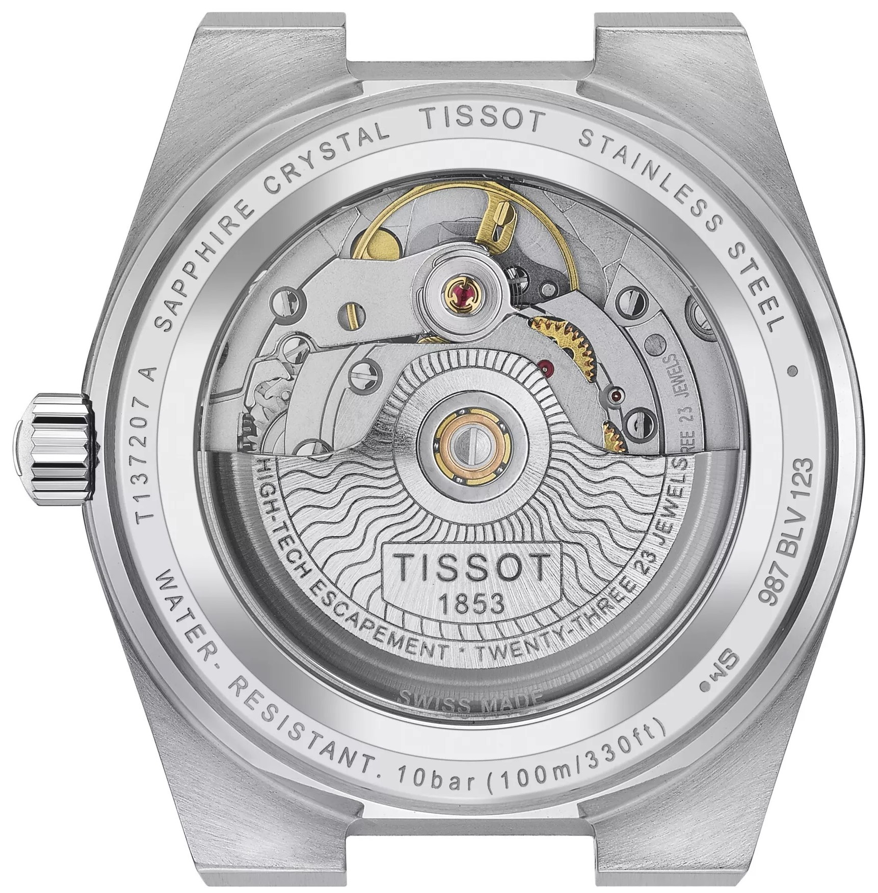 Tissot PRX Powermatic 80 T137.207.11.051.00 sú unisex automatické hodinky na integrovanom oceľovom náramku s brúsenou povrchovou úpravou a motýlikovou sponou. Puzdro z nerezovej ocele má priemer 35 milimetrov a priehľadné viečko. Čierny číselník s indikáciou dátumu je chránený odolným zafírovým sklom s antireflexnou vrstvou. Jeho jedinečný vaflový vzor dodáva číselníku hĺbku a charakter. Aplikované hodinové indexy sú rovnaké ako ručičky pokryté luminiscenčným náterom Super-LumiNova®, ktorý garantuje perfektnú čitateľnosť za zhoršených svetelných podmienok. Pohon hodiniek zaisťuje mechanický strojček Powermatic 80.111 s automatickým náťahom a rezervou chodu približne 80 hodín. Vďaka použitiu antimagnetického vlásku zotrvačky Nivachron™ z titánovej zliatiny, na ktorého vývoji sa spolu so Swatch Group podieľala manufaktúra Audemars Piguet, je tento kaliber vysoko odolný voči vplyvom magnetického poľa. Tento strojček s funkciou hackingu možno v prípade potreby naťahovať aj ručne pomocou signovanej korunky. Vodotesnosť hodiniek je 10 ATM a sú vhodné na kúpanie alebo šnorchlovanie.